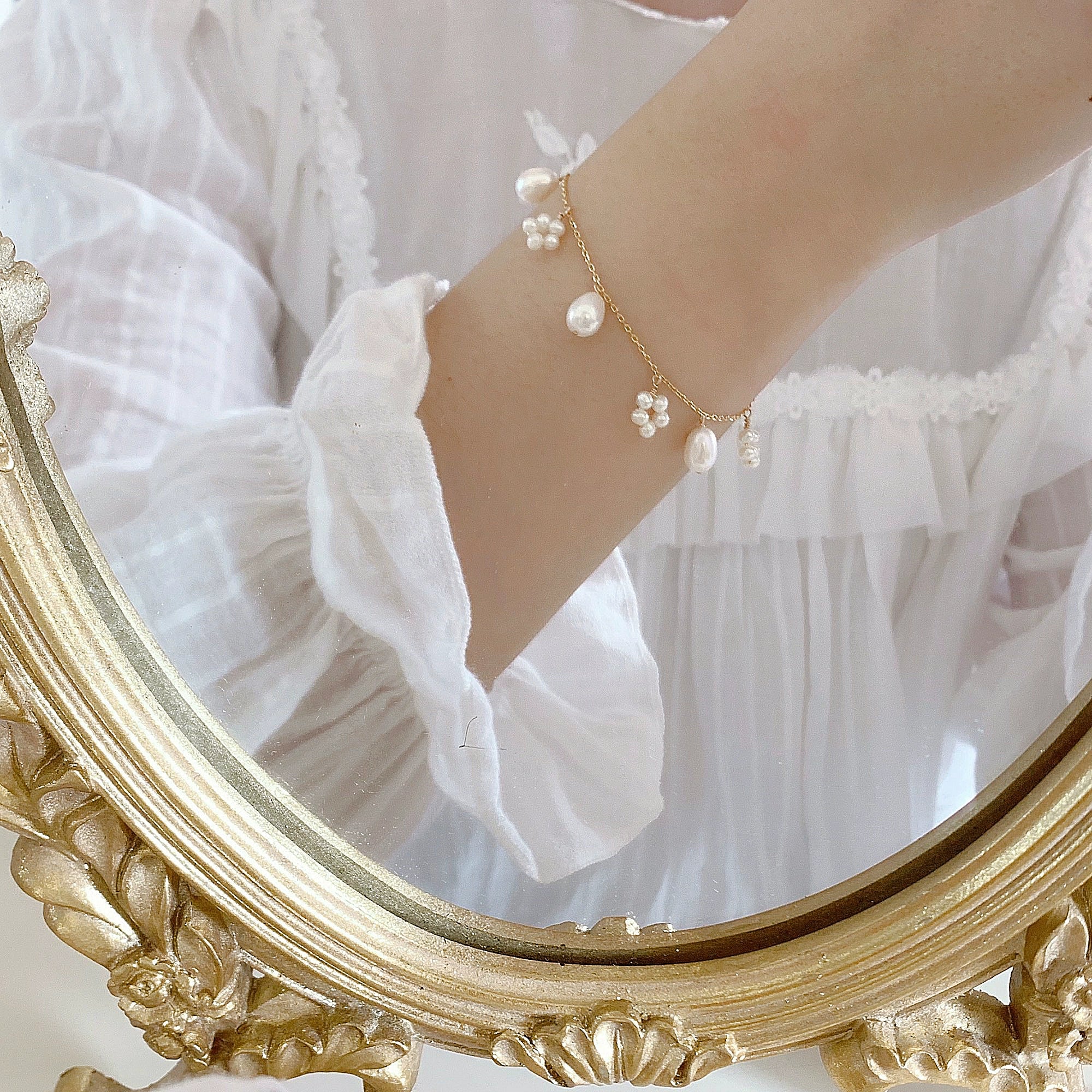 Size: 16cm+3.5 cm, Pearl:7~8mm, Pearl Clusters:2mm x 5