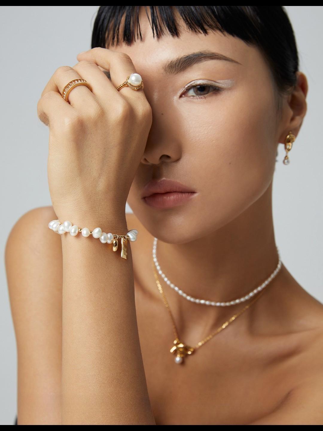 Material: S925 silver plated with gold and natural pearls.