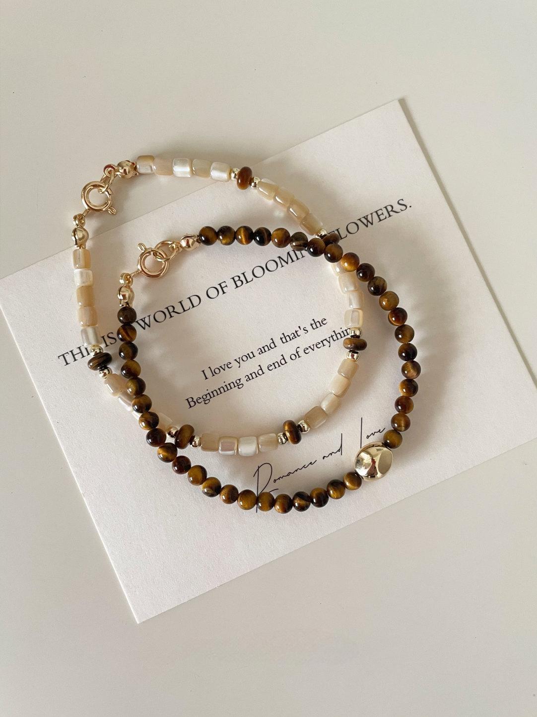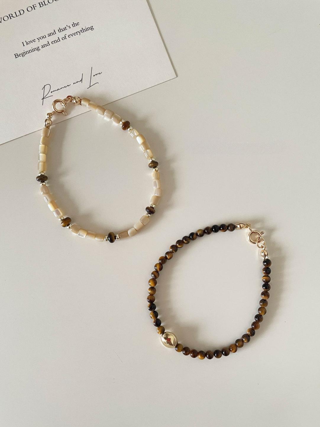 Retro Tiger Eye Stone Natural Shell Beaded Bracelet Set (2 pcs)