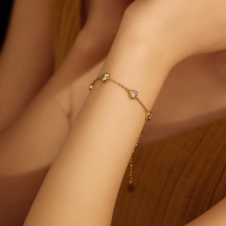 Heart Shine Zirconia Gold Plated Bracelet