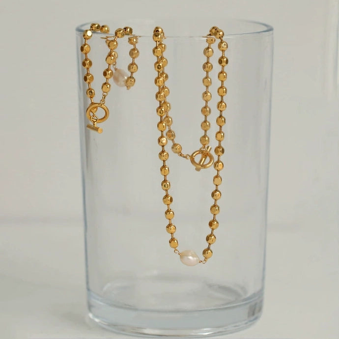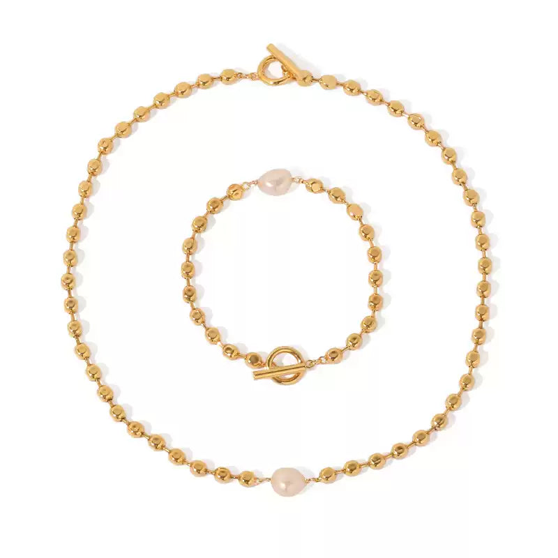 Beaded Gold Plated OT Clasp Necklace and Bracelet