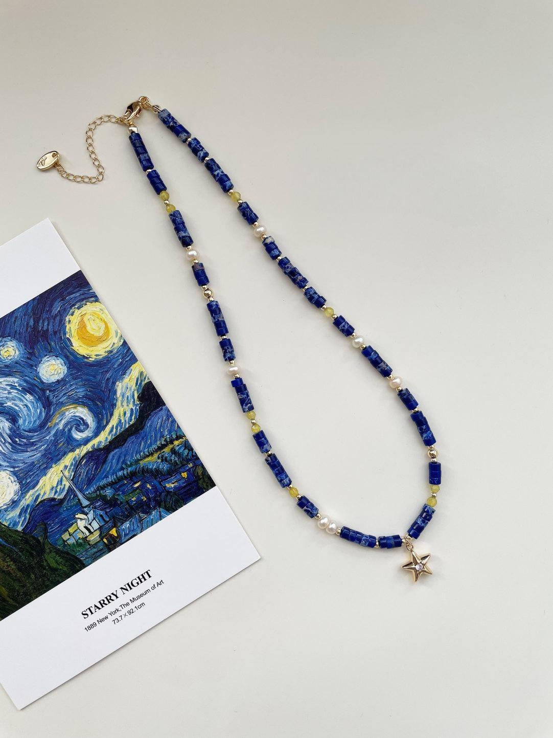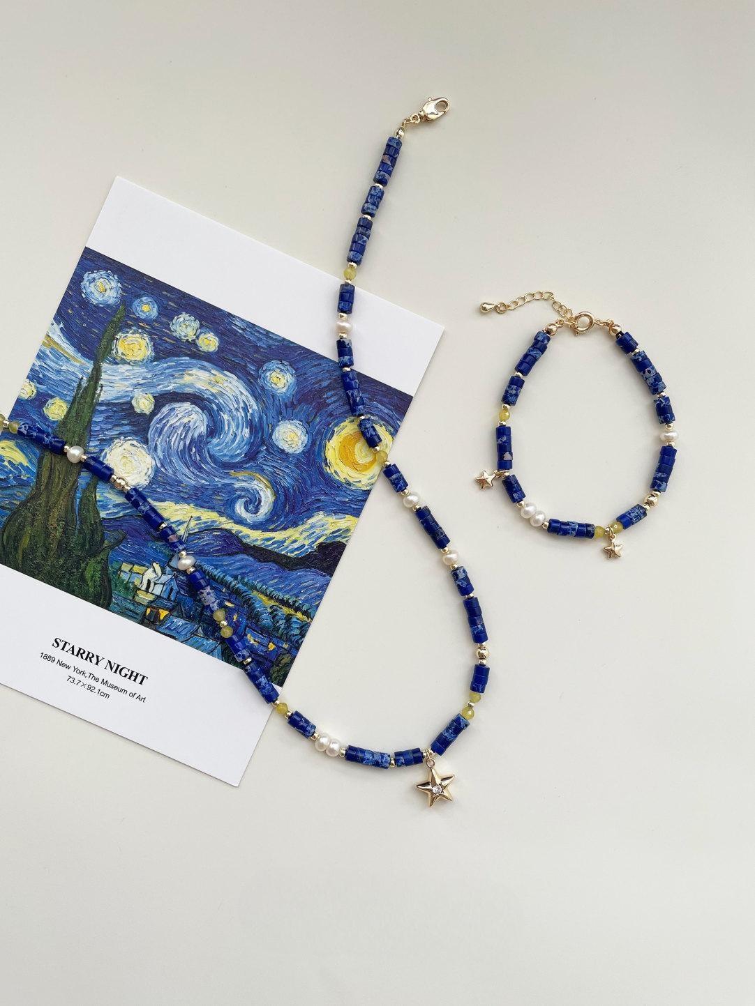Van Gogh Starry Sky Natural Stone Five-Point Star Necklace and Bracelet Set