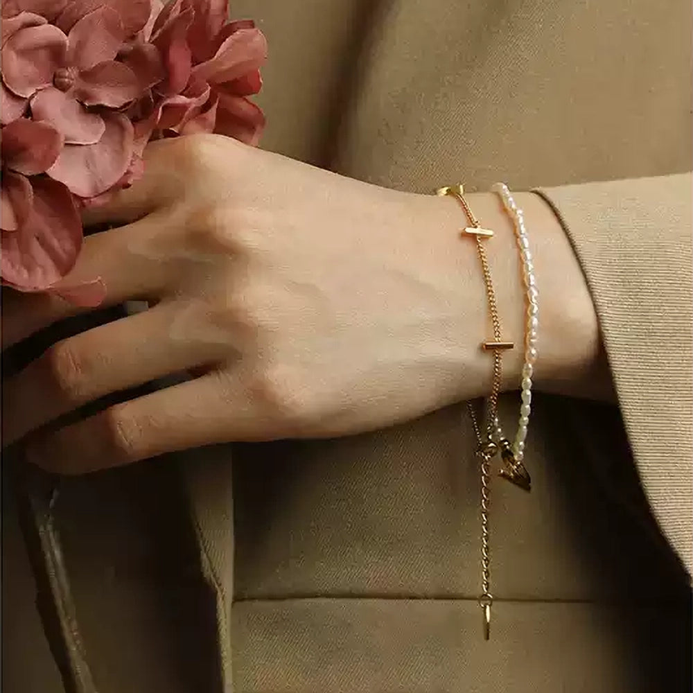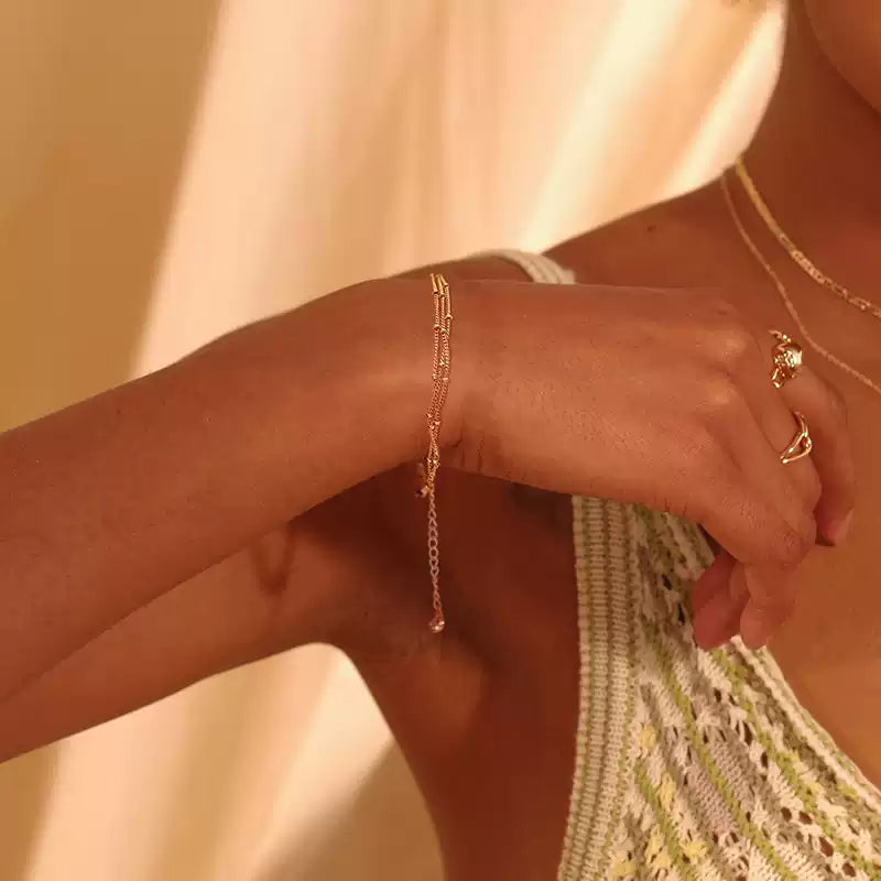 Half Double-Layer Gold Plated Beads Bracelet