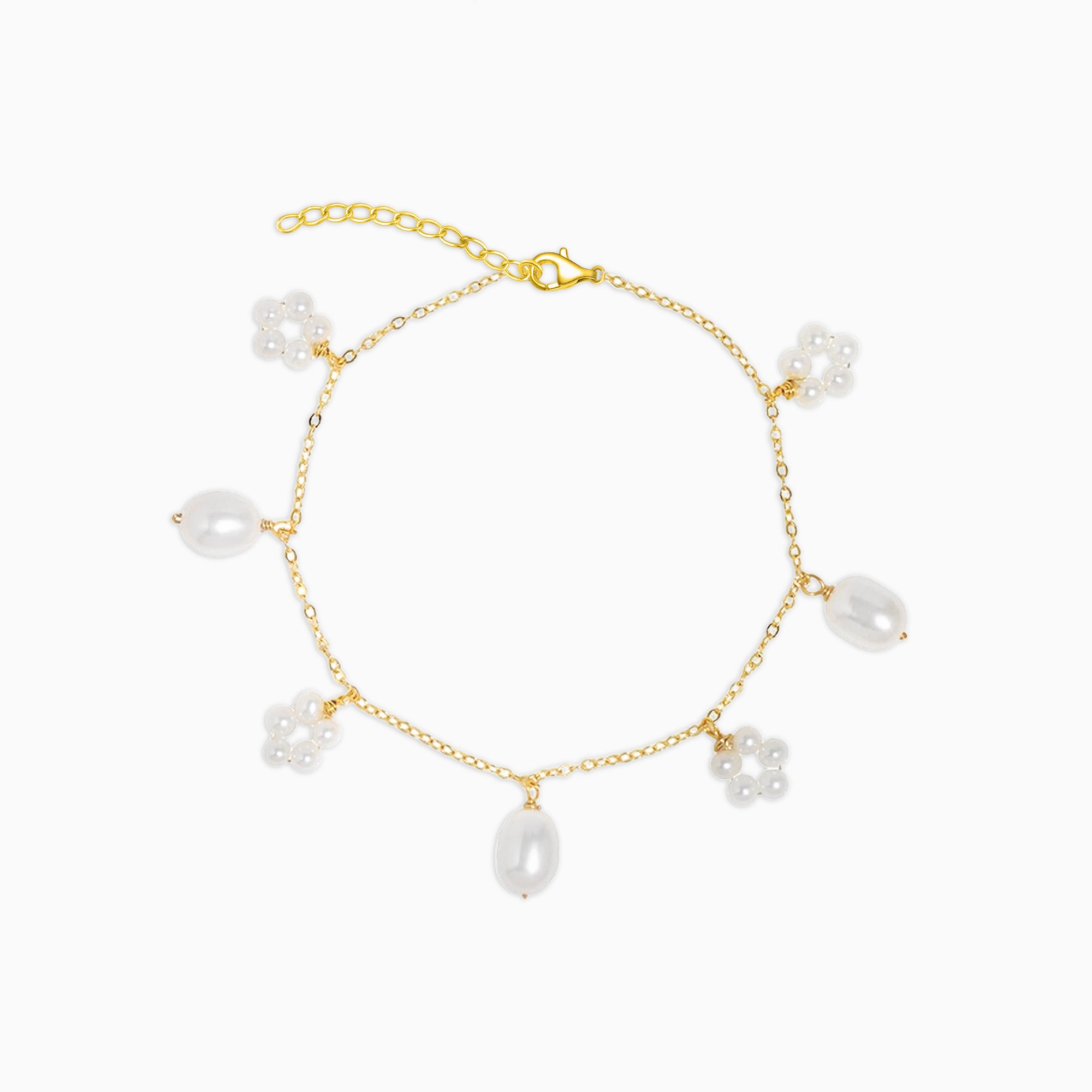 Elegant Gold Plated Hook Clasp Pearls Bracelet