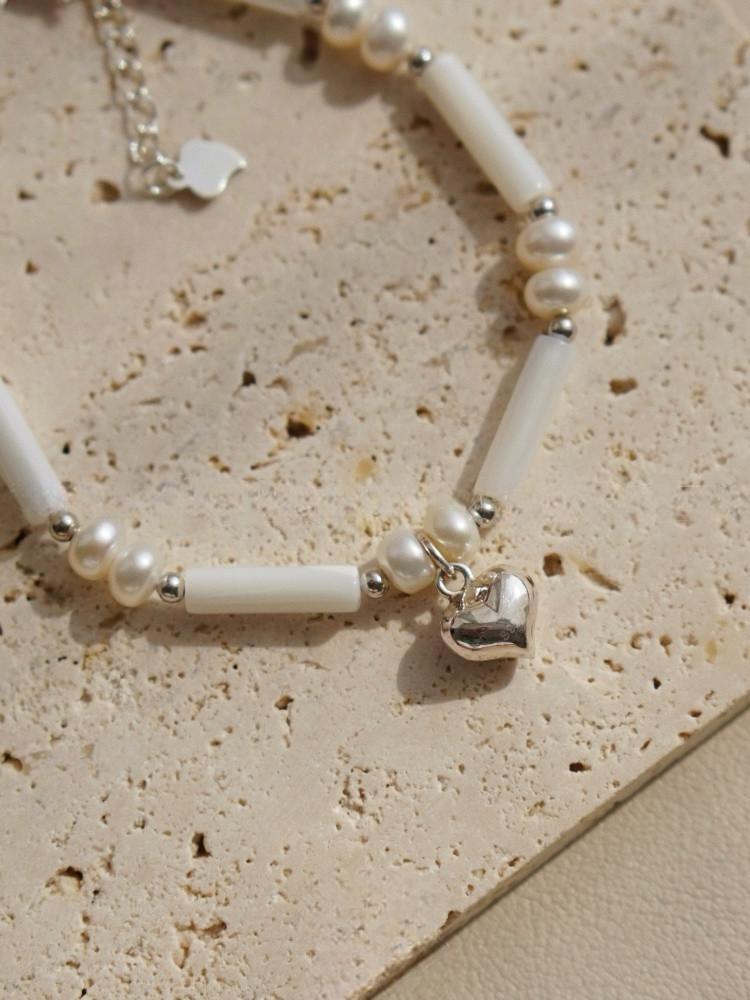 Freshwater Pearl Baroque Shell Barrel Heart Charm Bracelet
