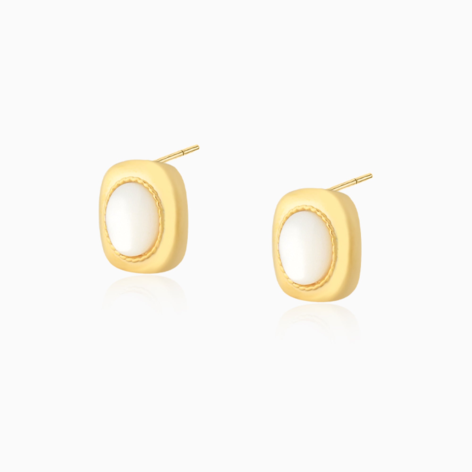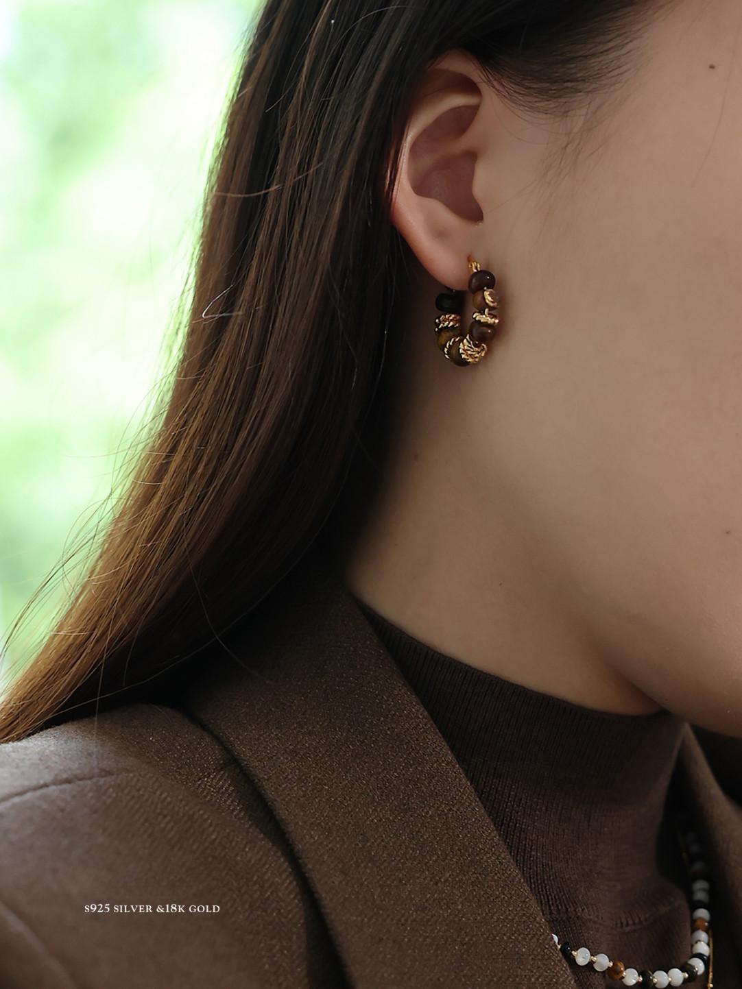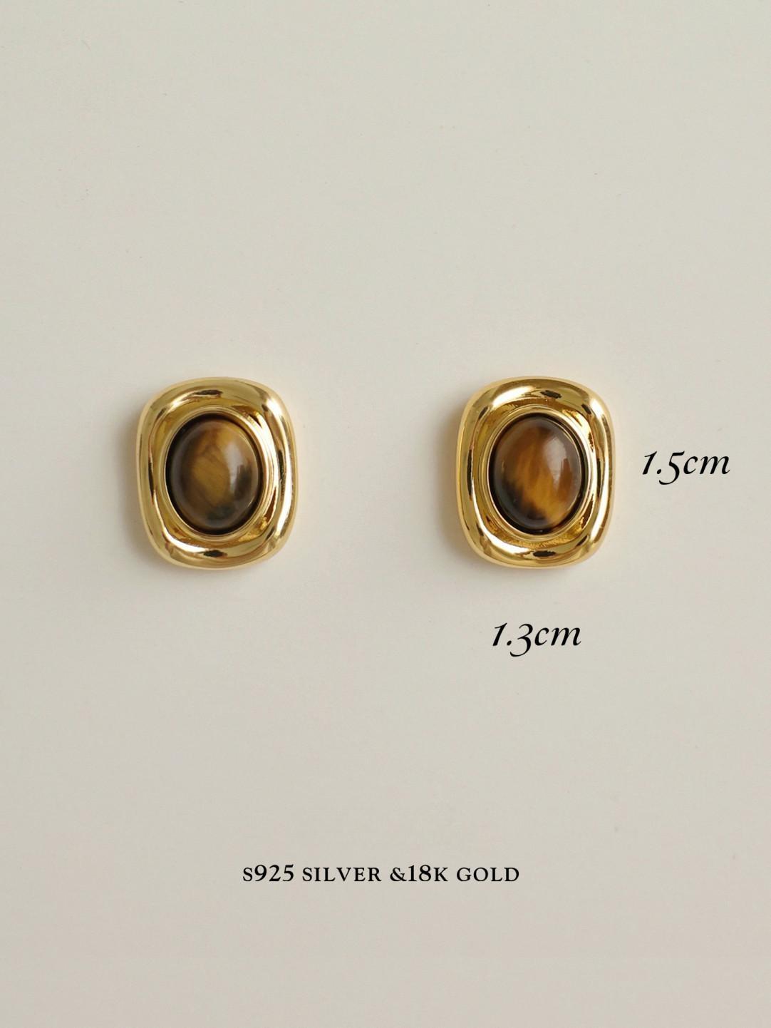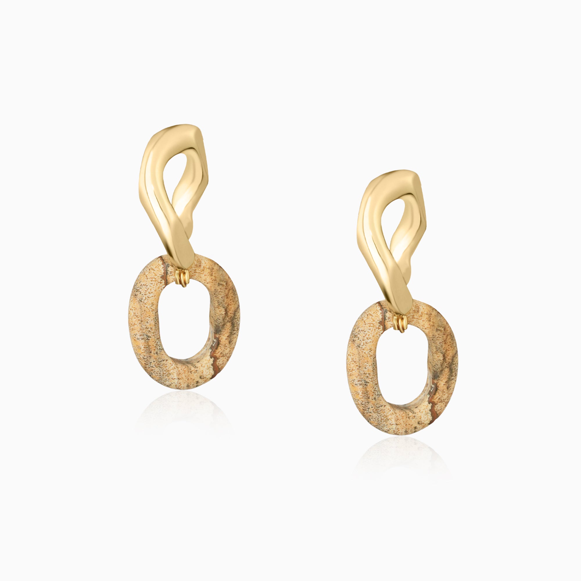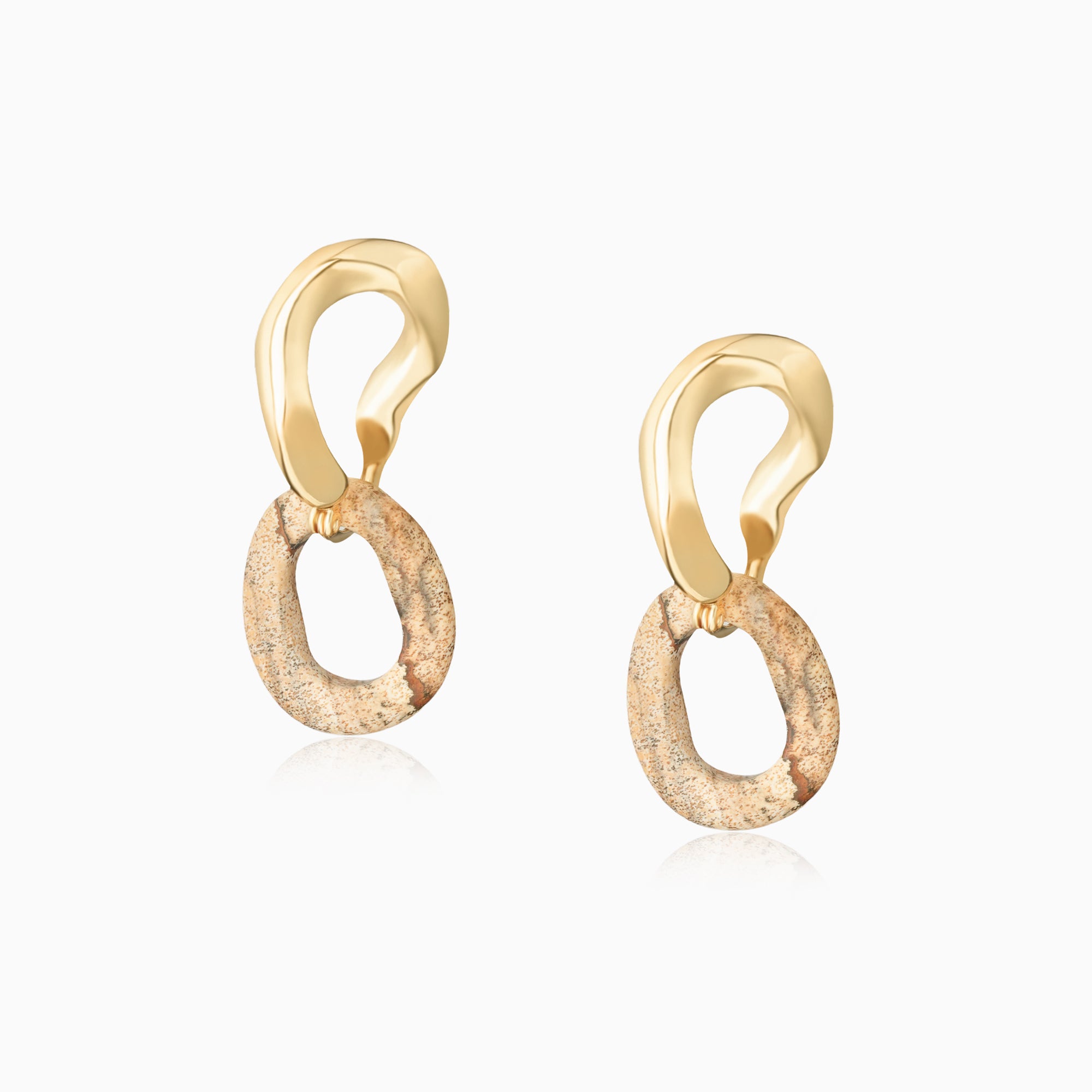 Tiger's Eye Stone Textured Gold Plated Earrings