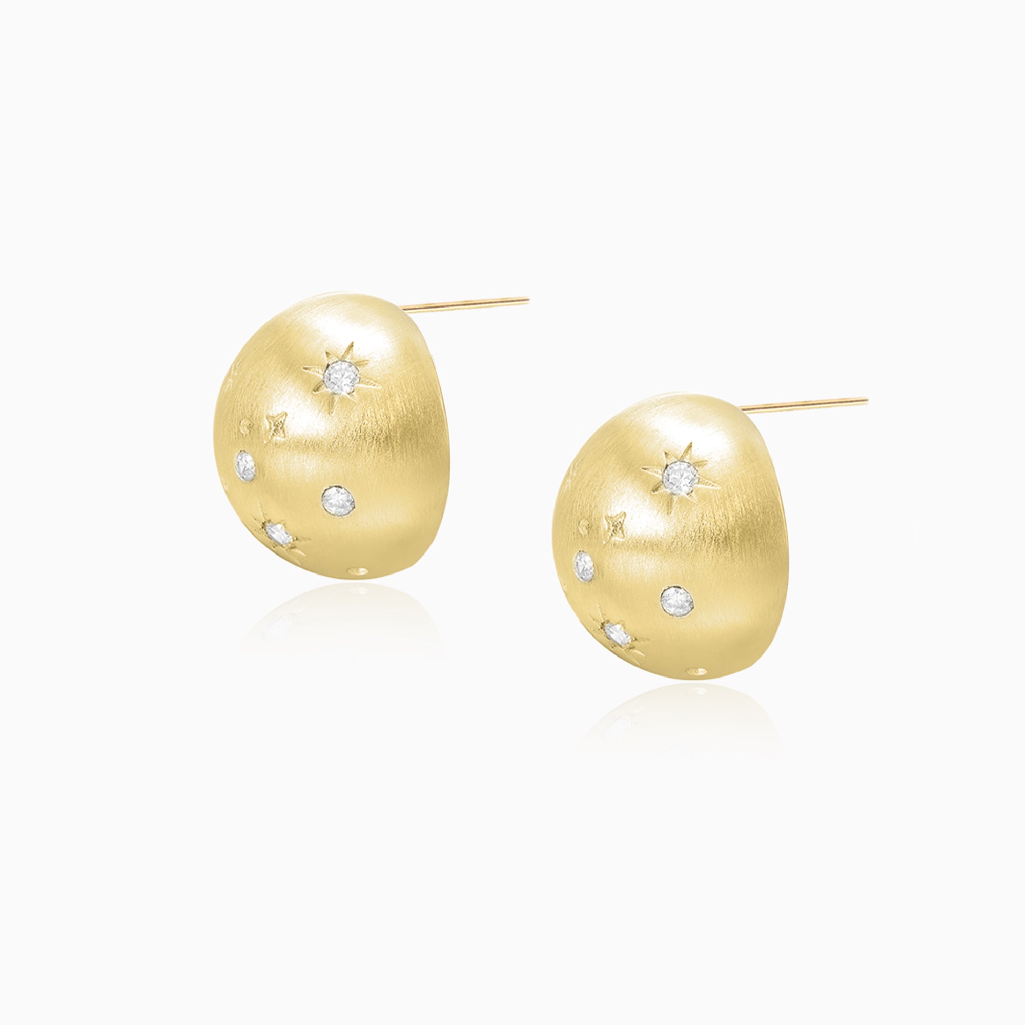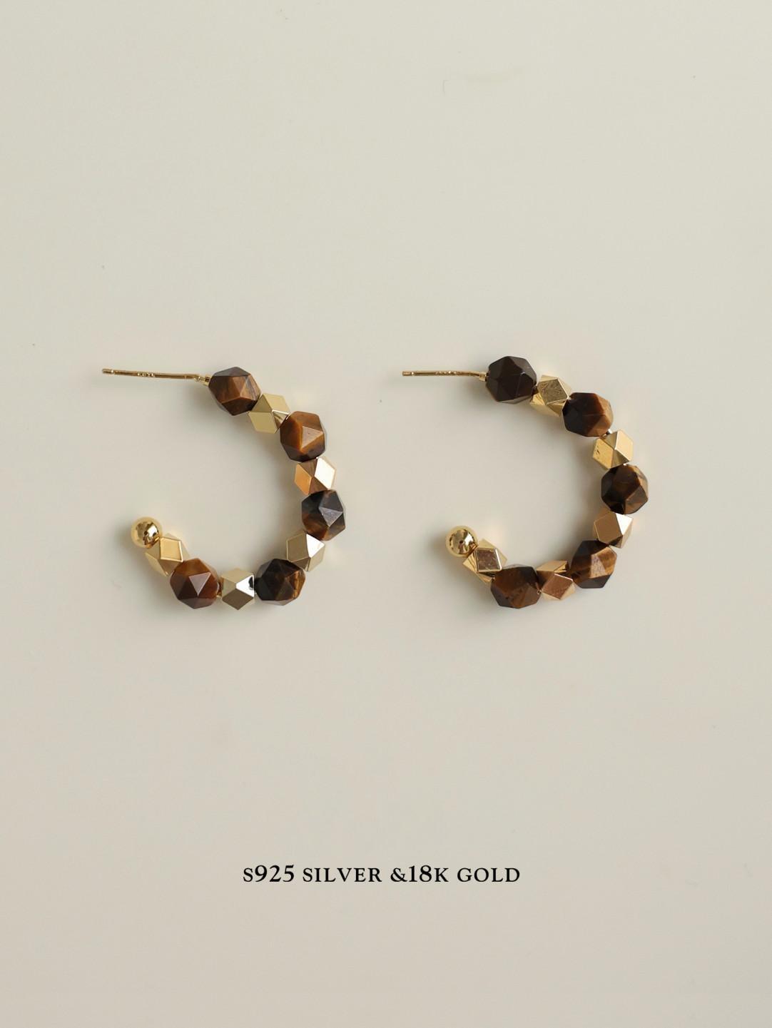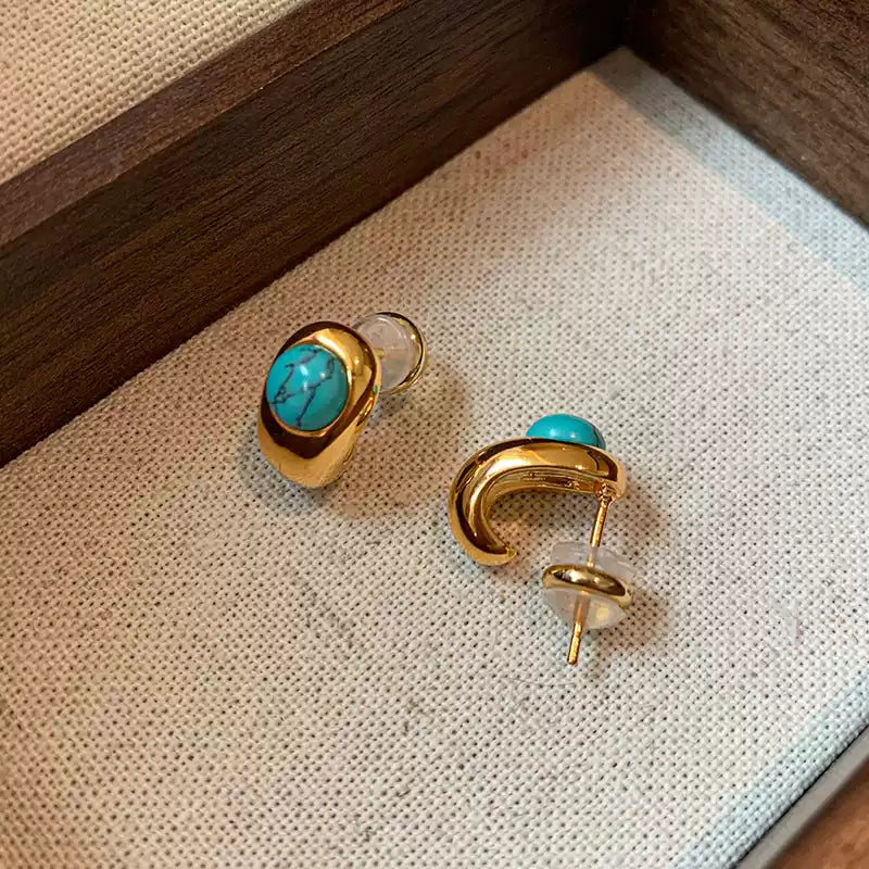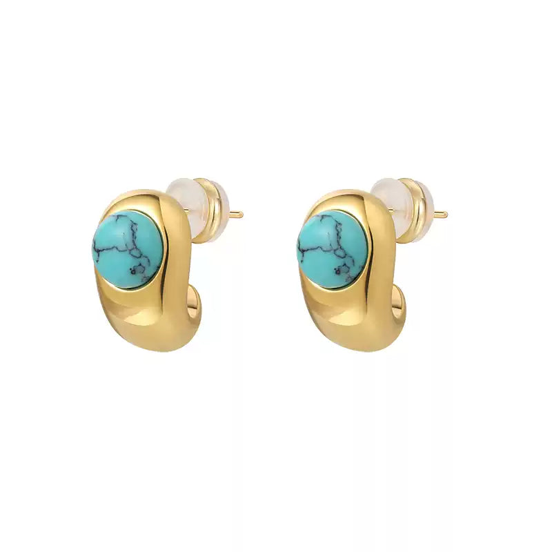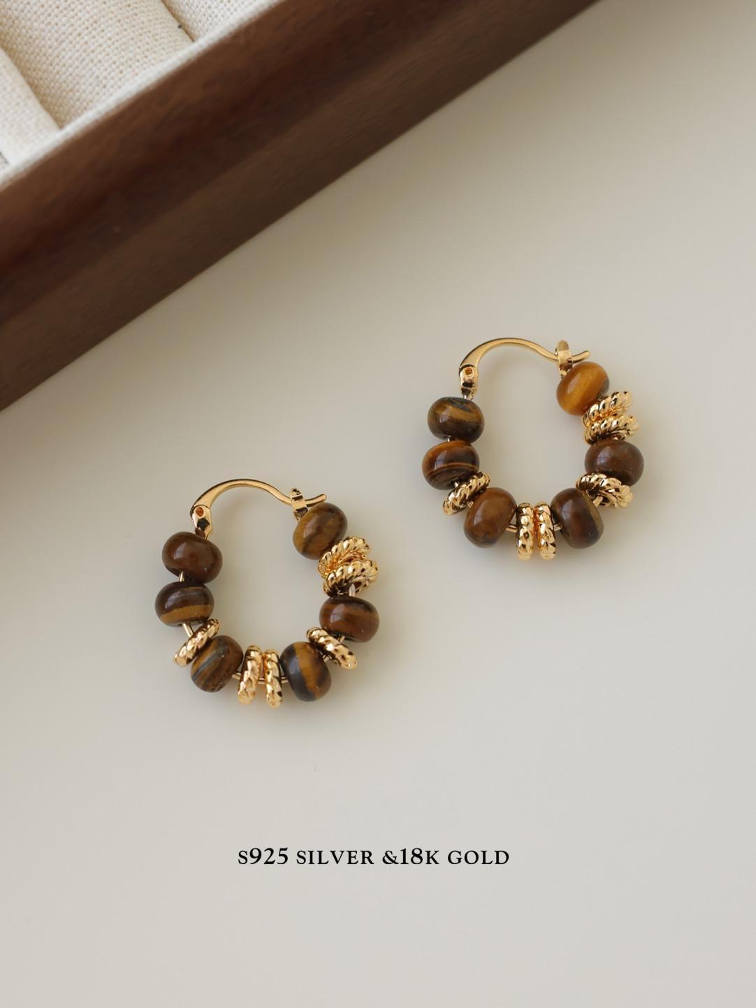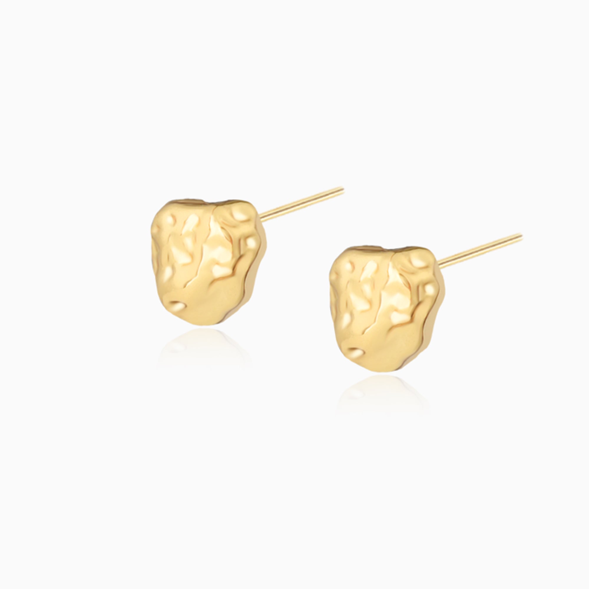 Tiger's Eye Stone Textured Gold Plated Earrings