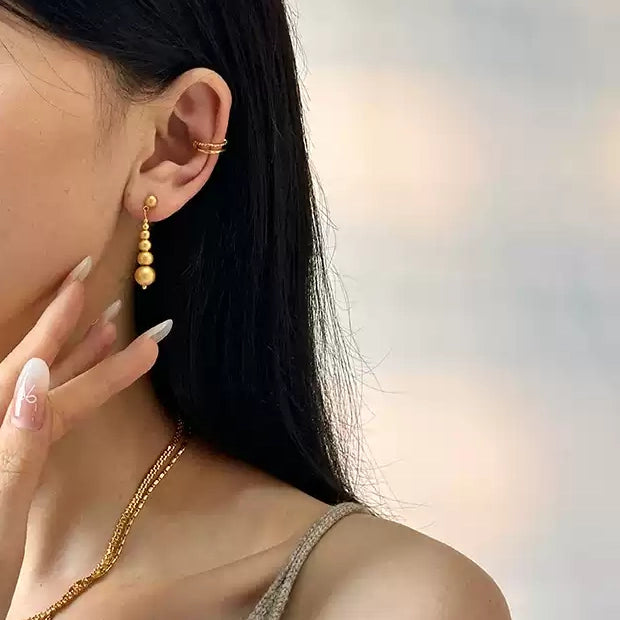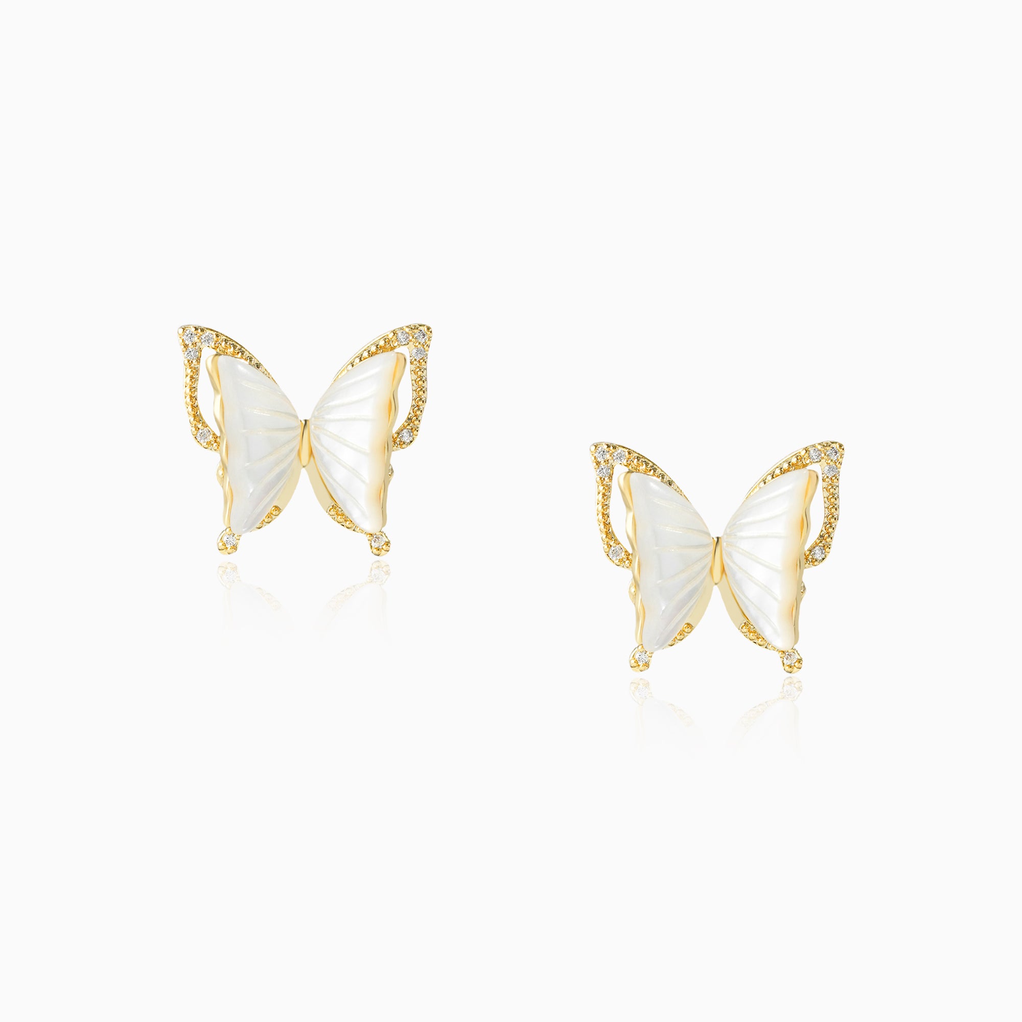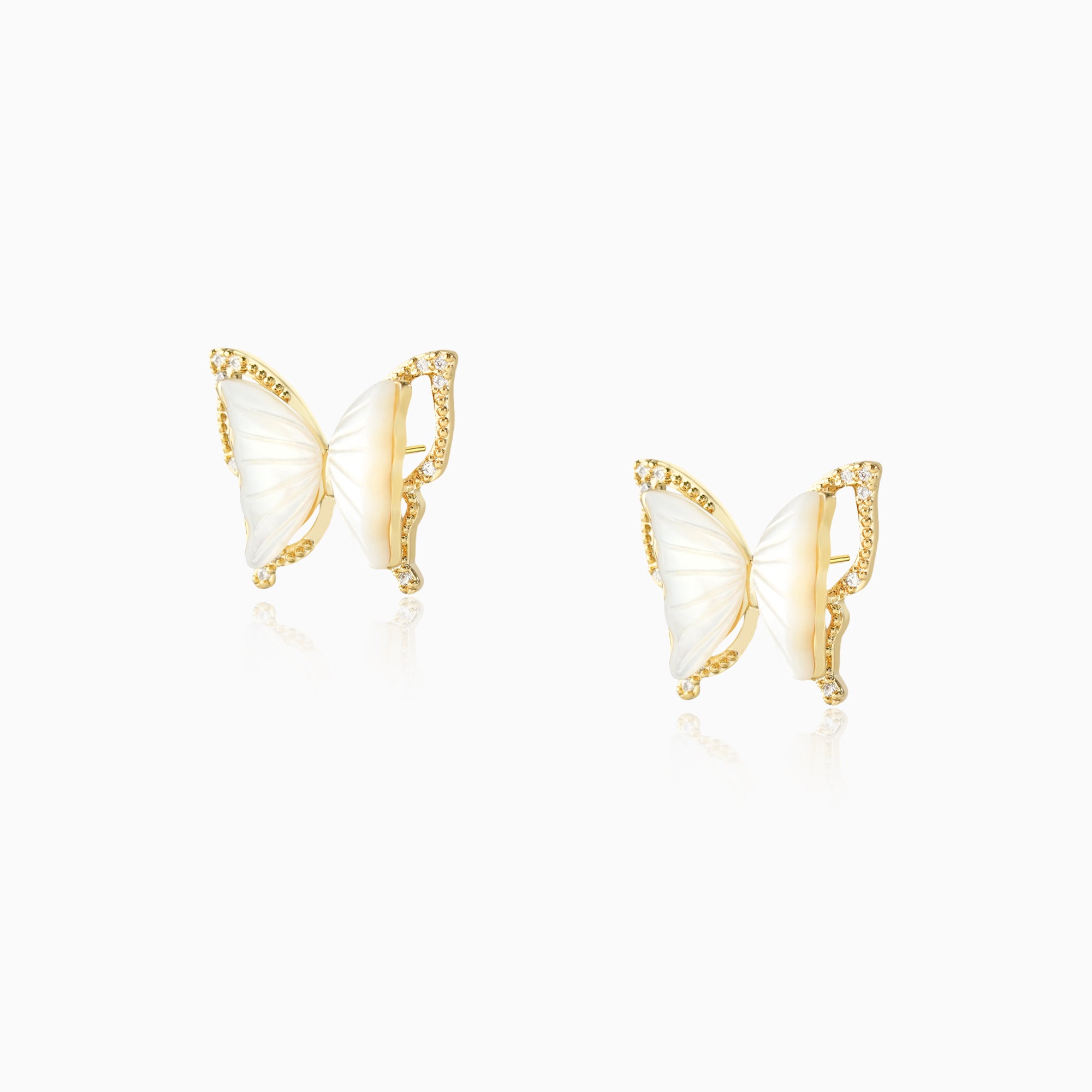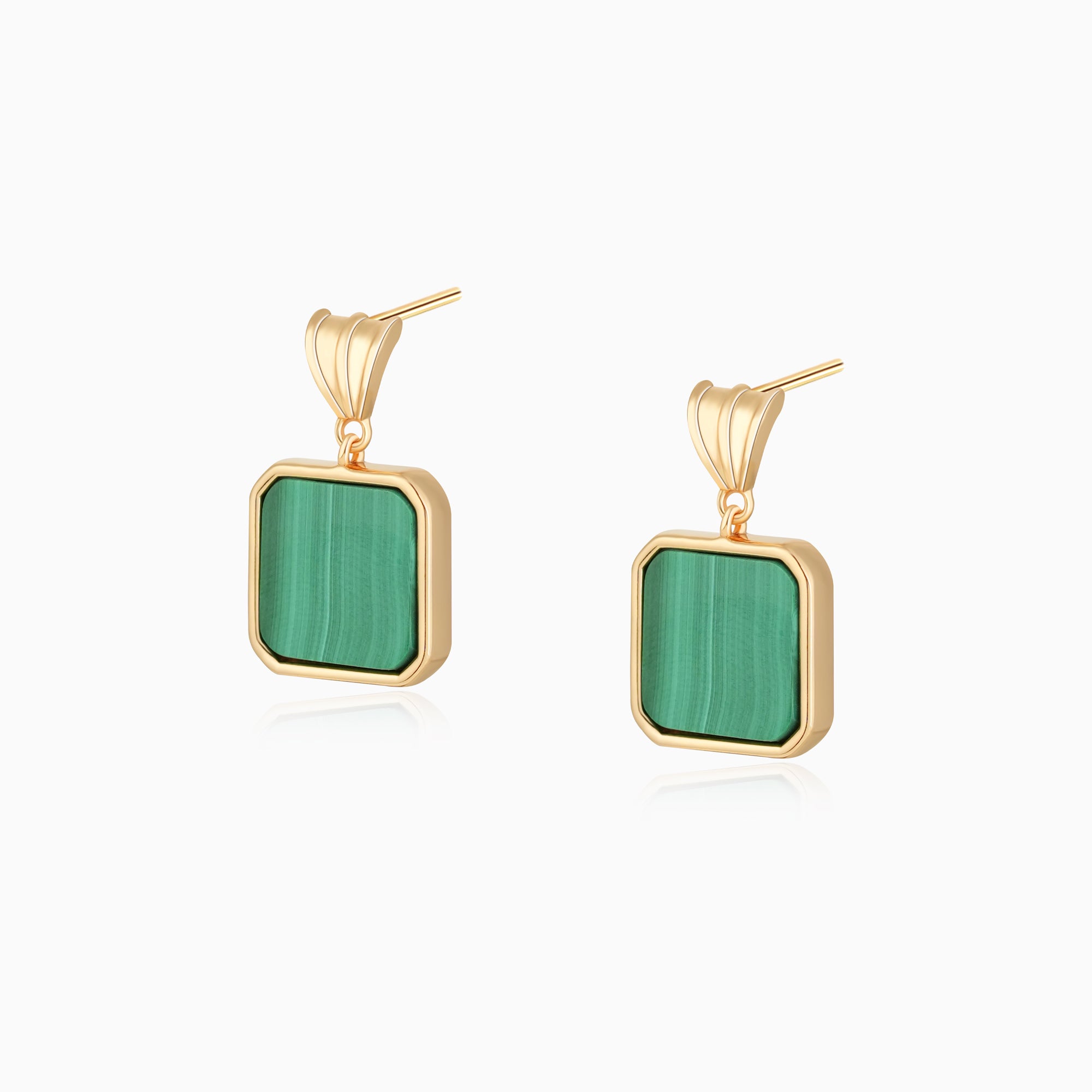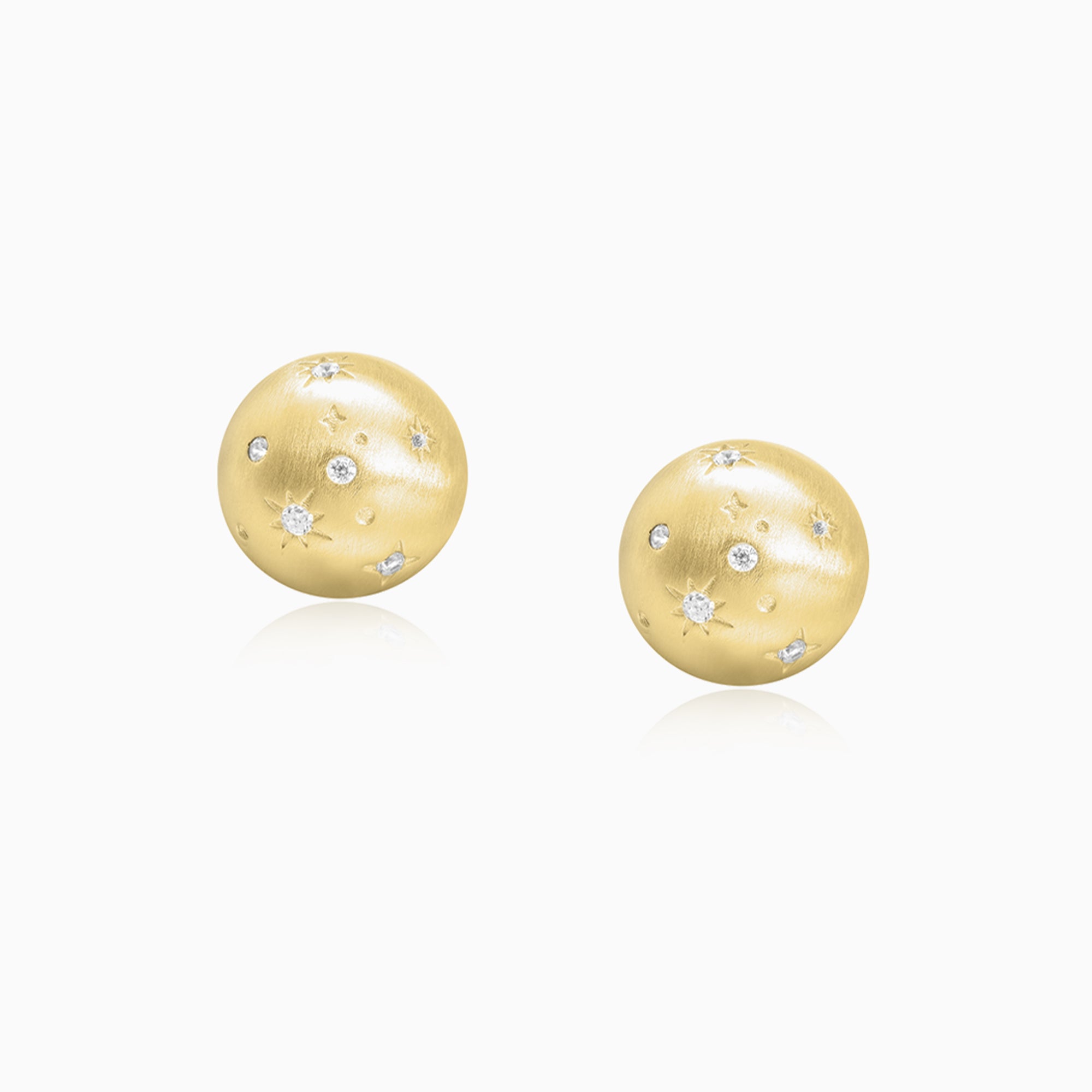 Tiger's Eye Stone Textured Gold Plated Earrings
