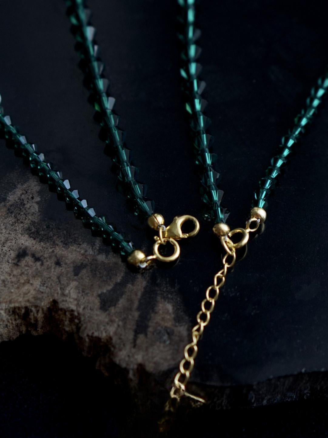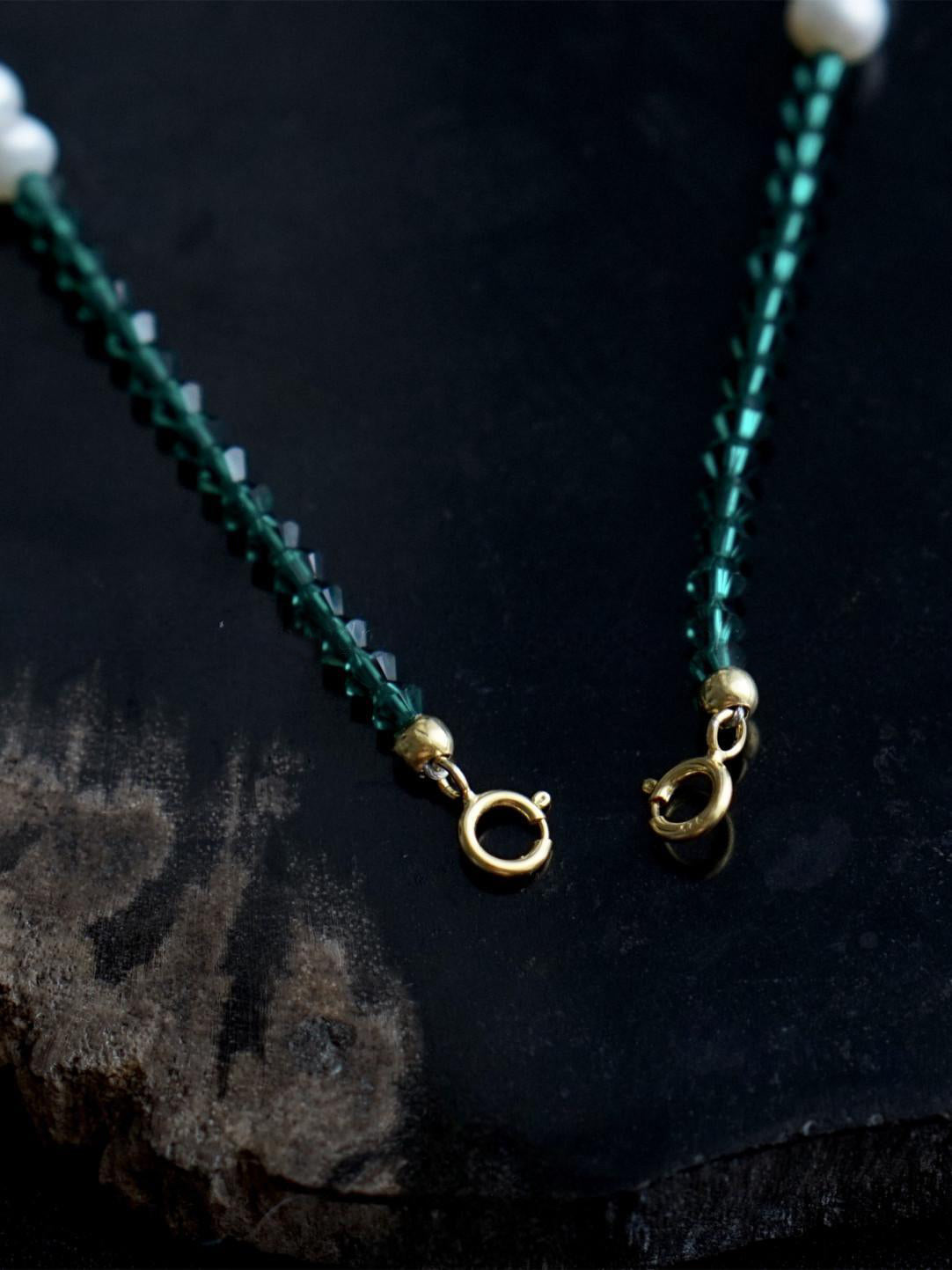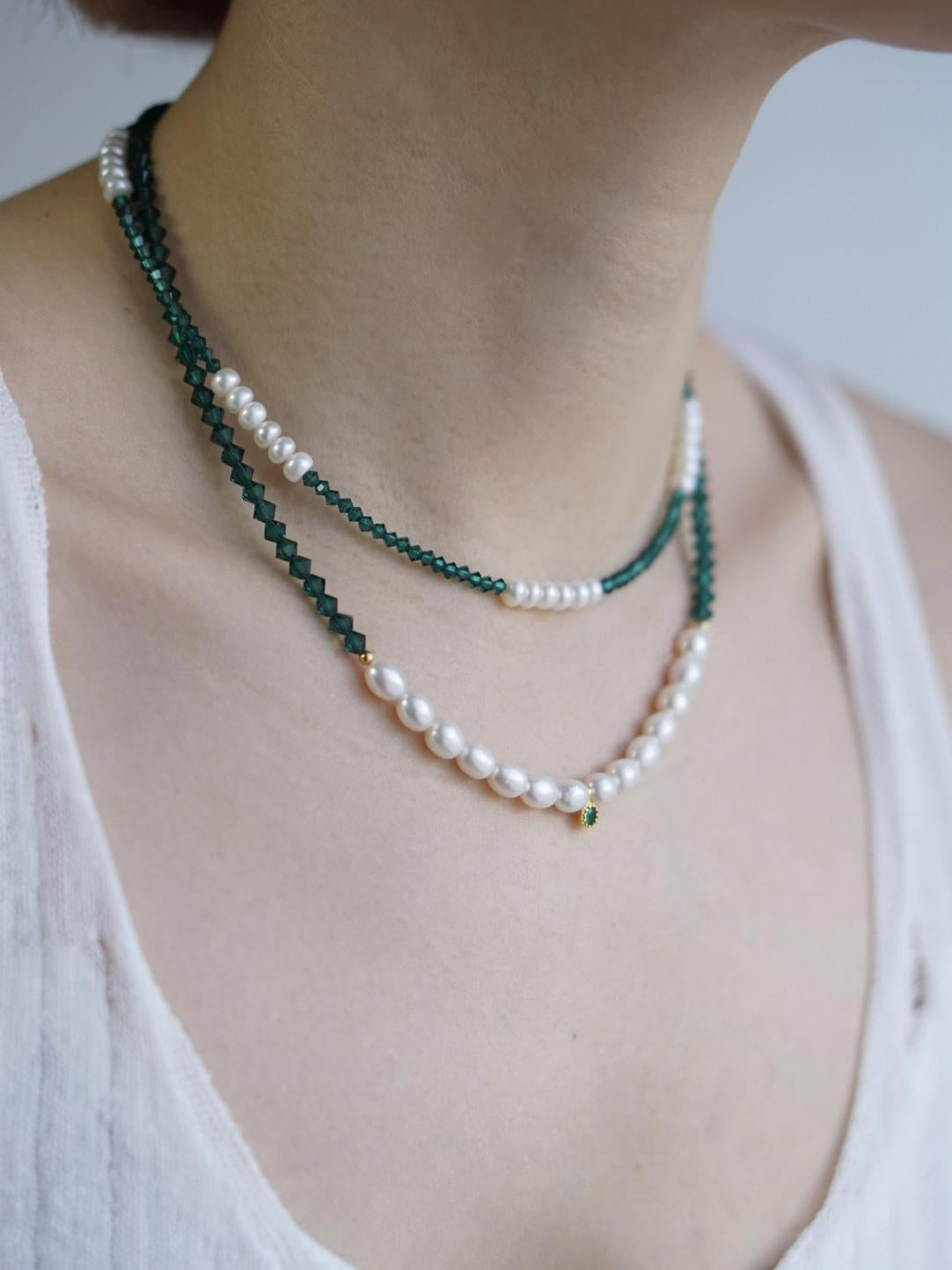 Emerald Green Austrian Crystal Freshwater Pearl Layered Necklace