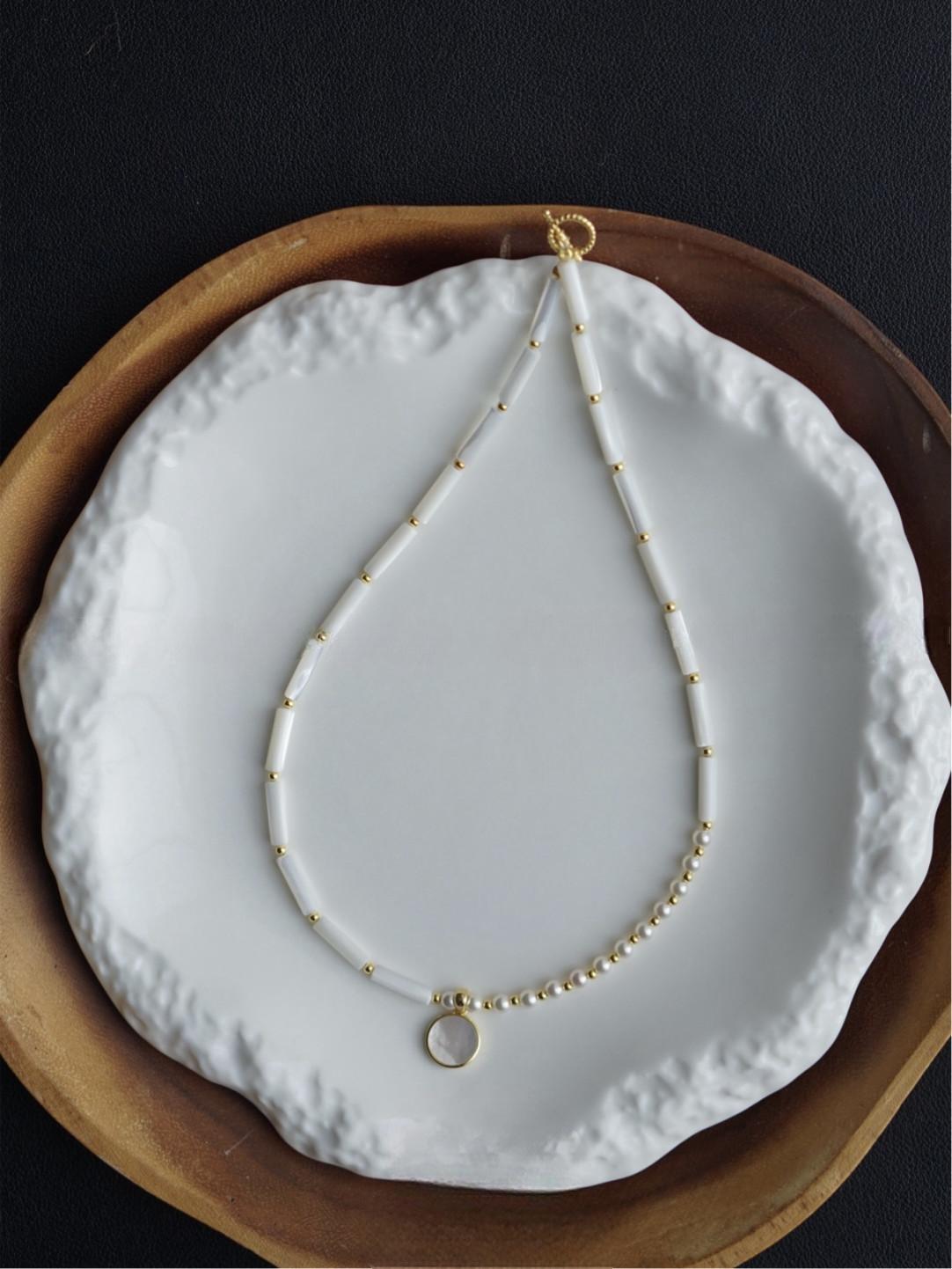 Material: Synthetic crystal pearls/natural mother-of-pearl bamboo.