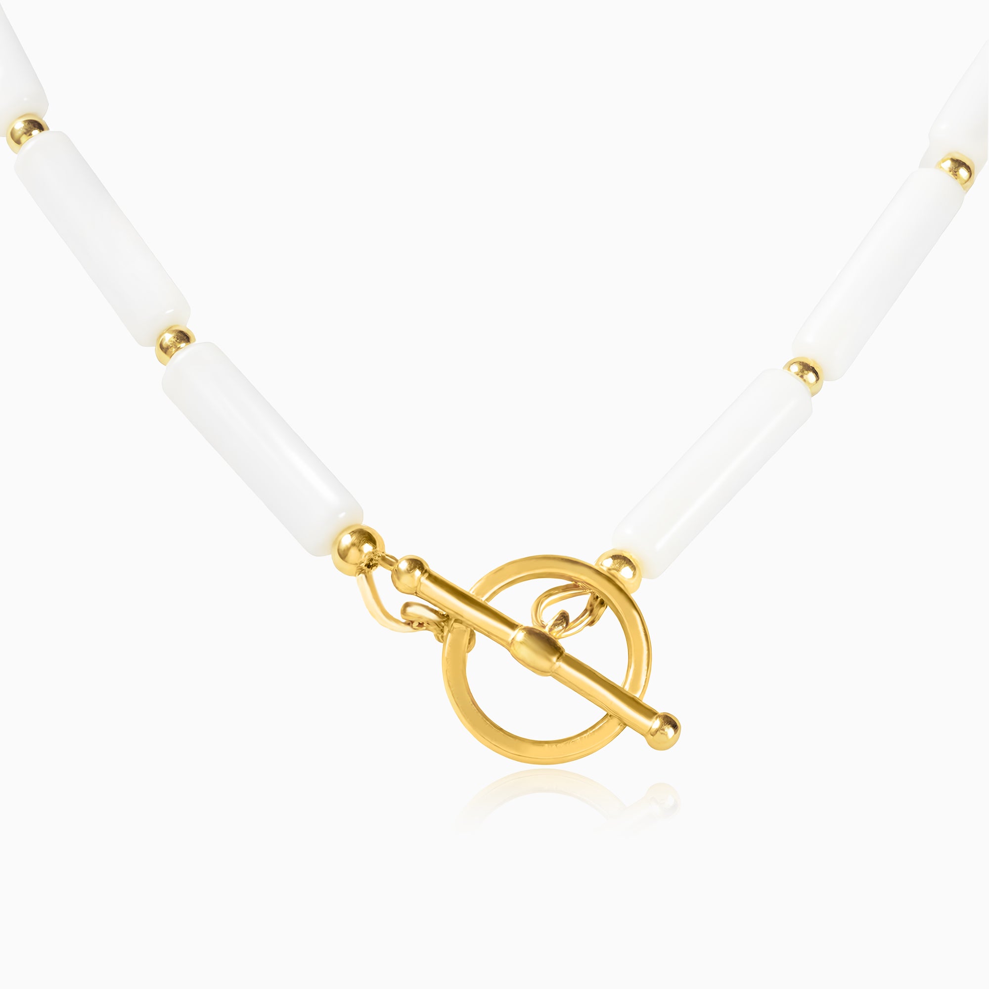 Gold Plated Natural Mother-of-Pearl Bamboo Pendant Necklace