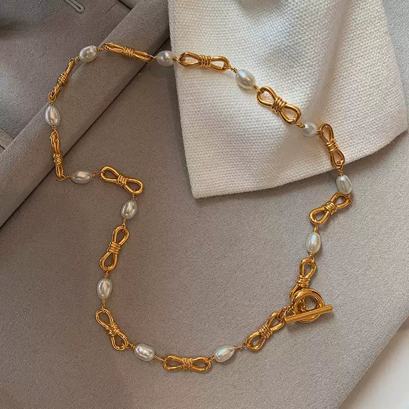 Natural Pearl Knot OT Clasp Gold Plated Necklace