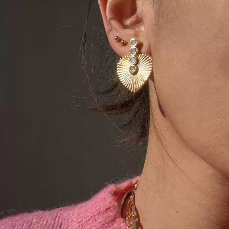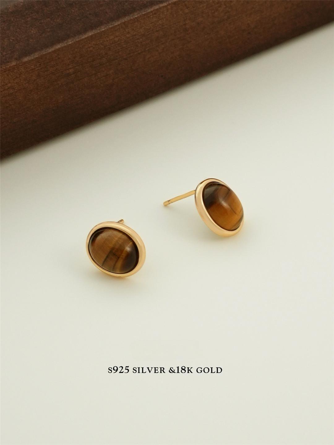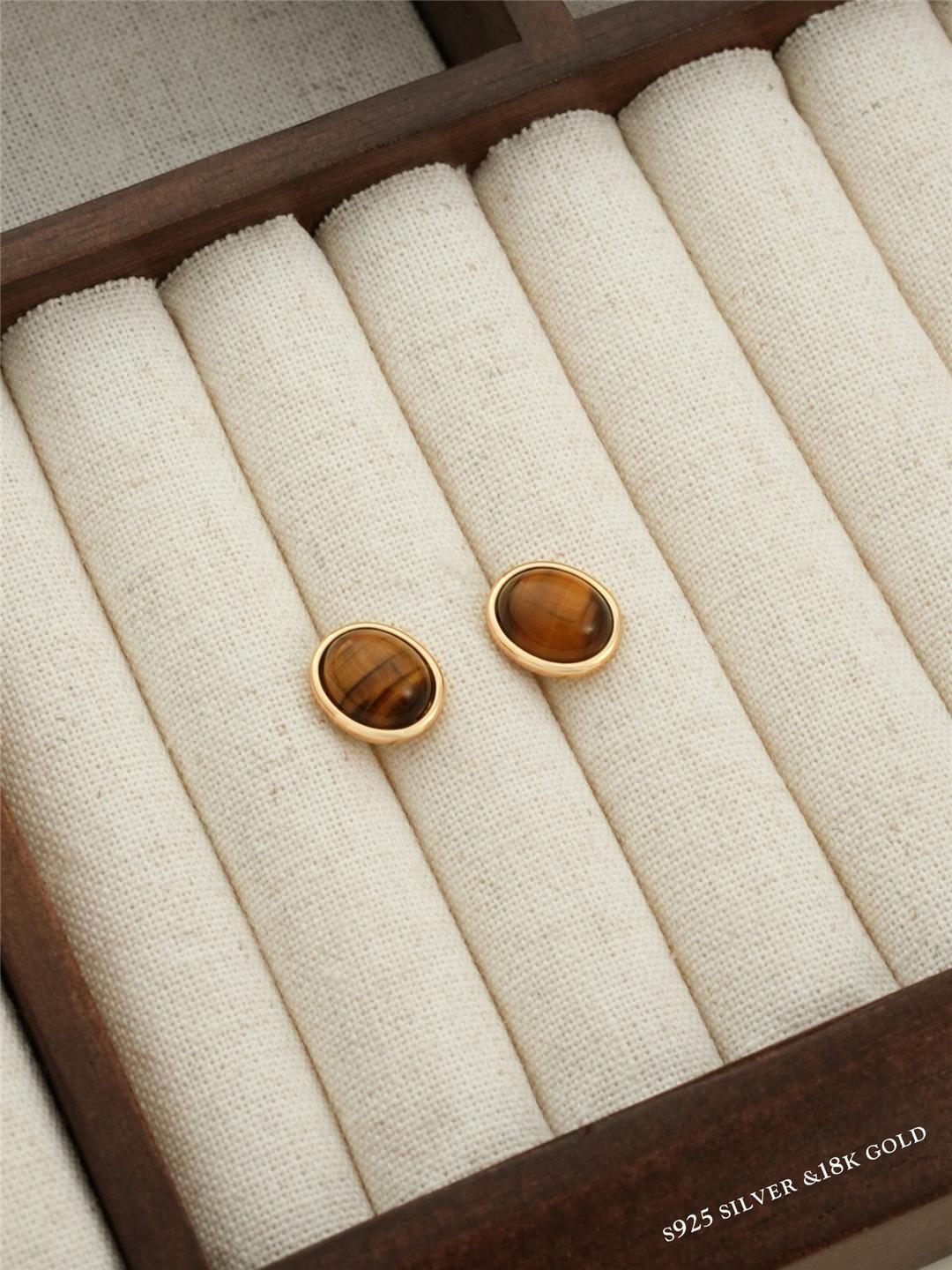 Tiger's Eye Stone Textured Gold Plated Earrings