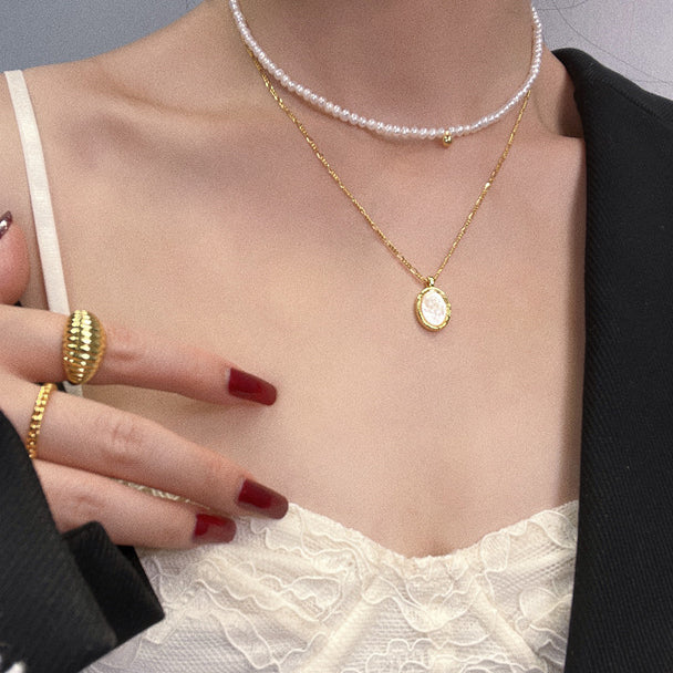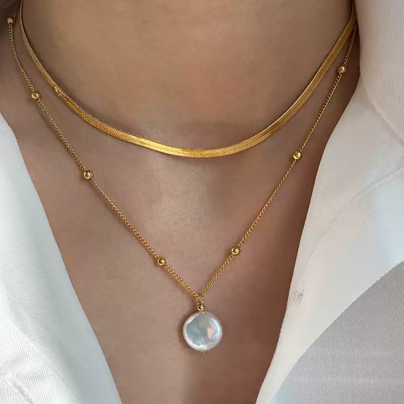 Snake-Chain Double Layer Beads Baroque Pearl Necklace