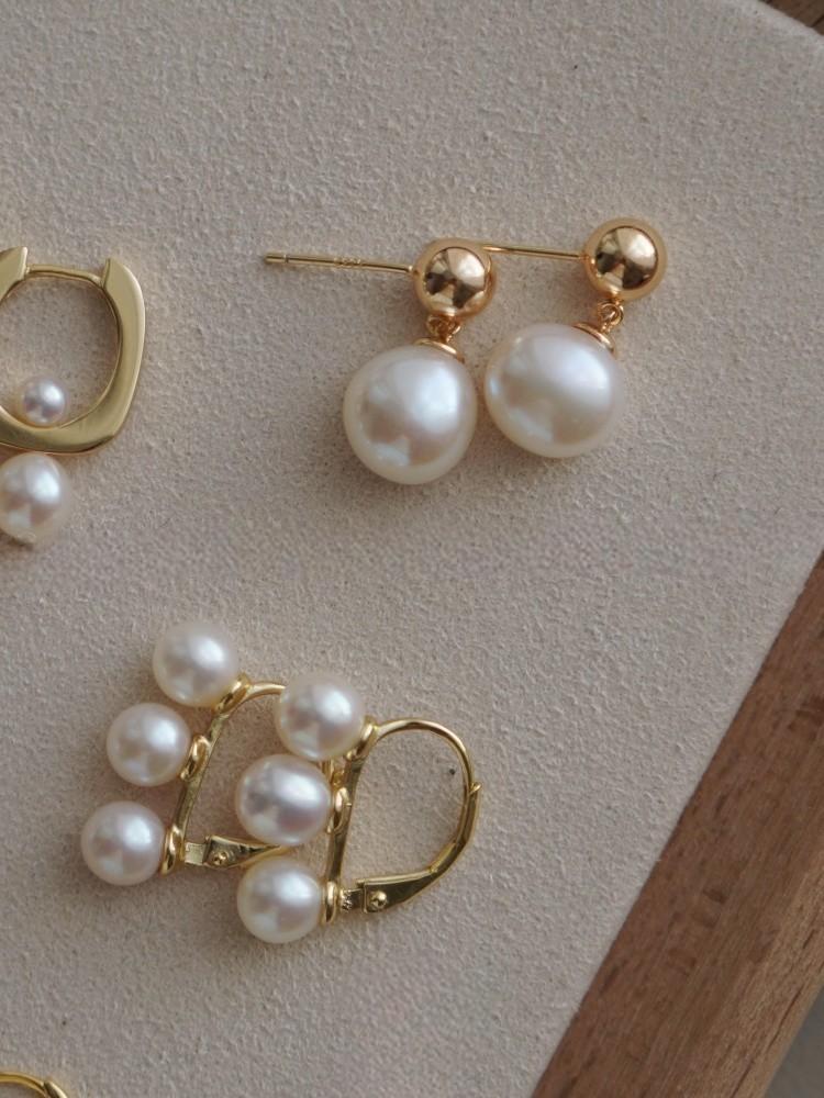 Freshwater Pearl Triple Row Gold Plated Earrings