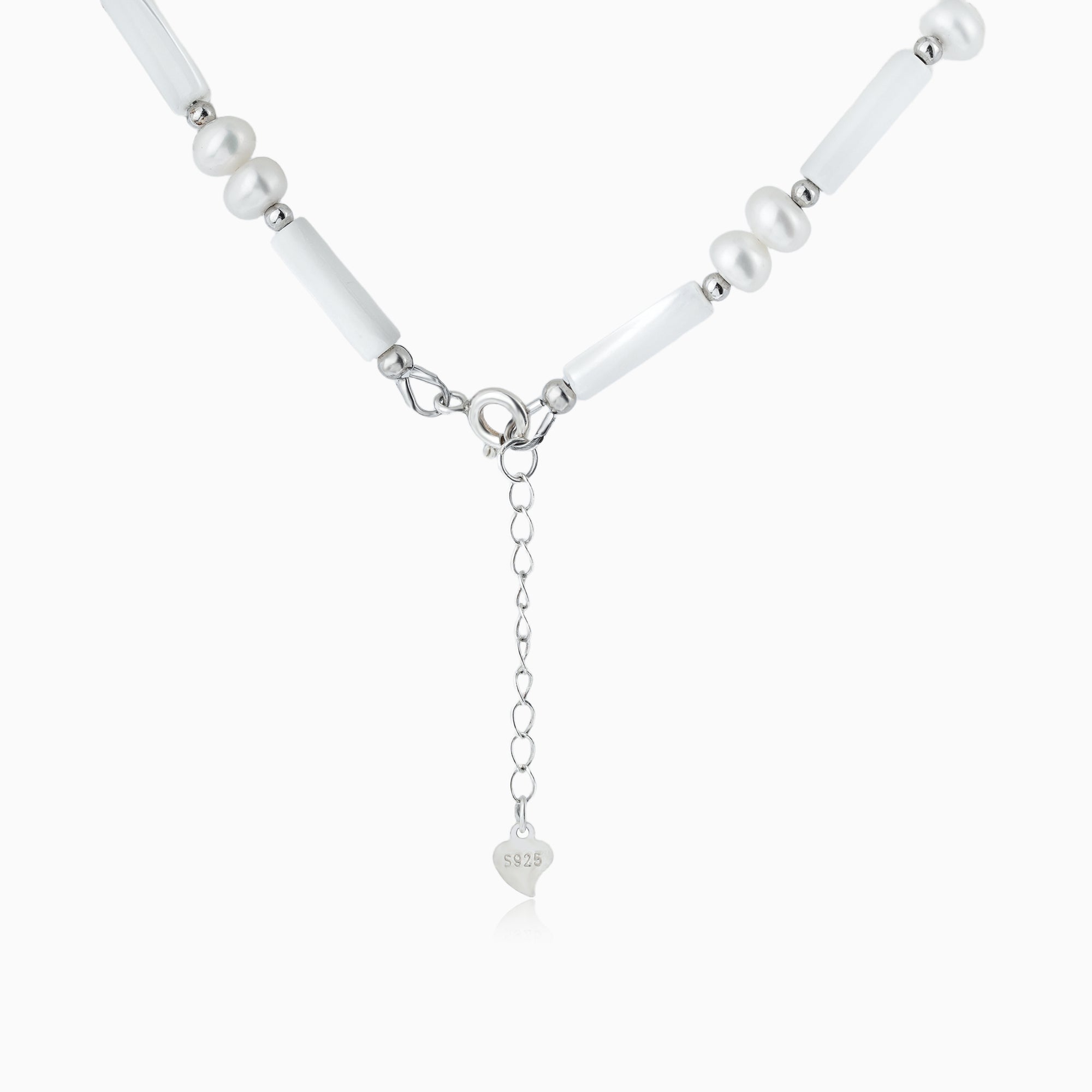 Natural Mother-of-Pearl Seed Bead Heart Pendant Necklace