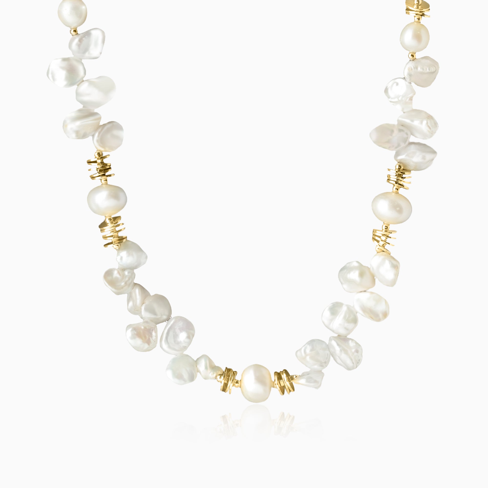 Natural Shell Freshwater Pearl Baroque Gold Plated Necklace