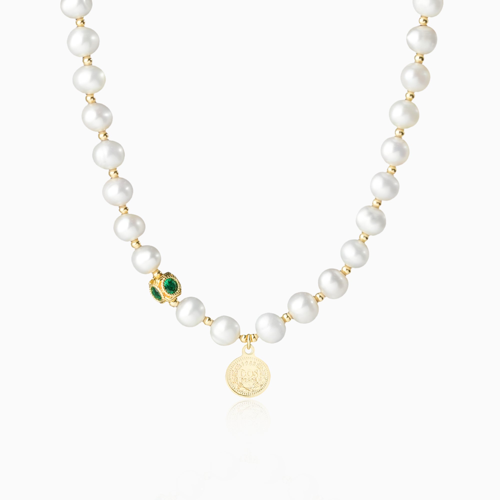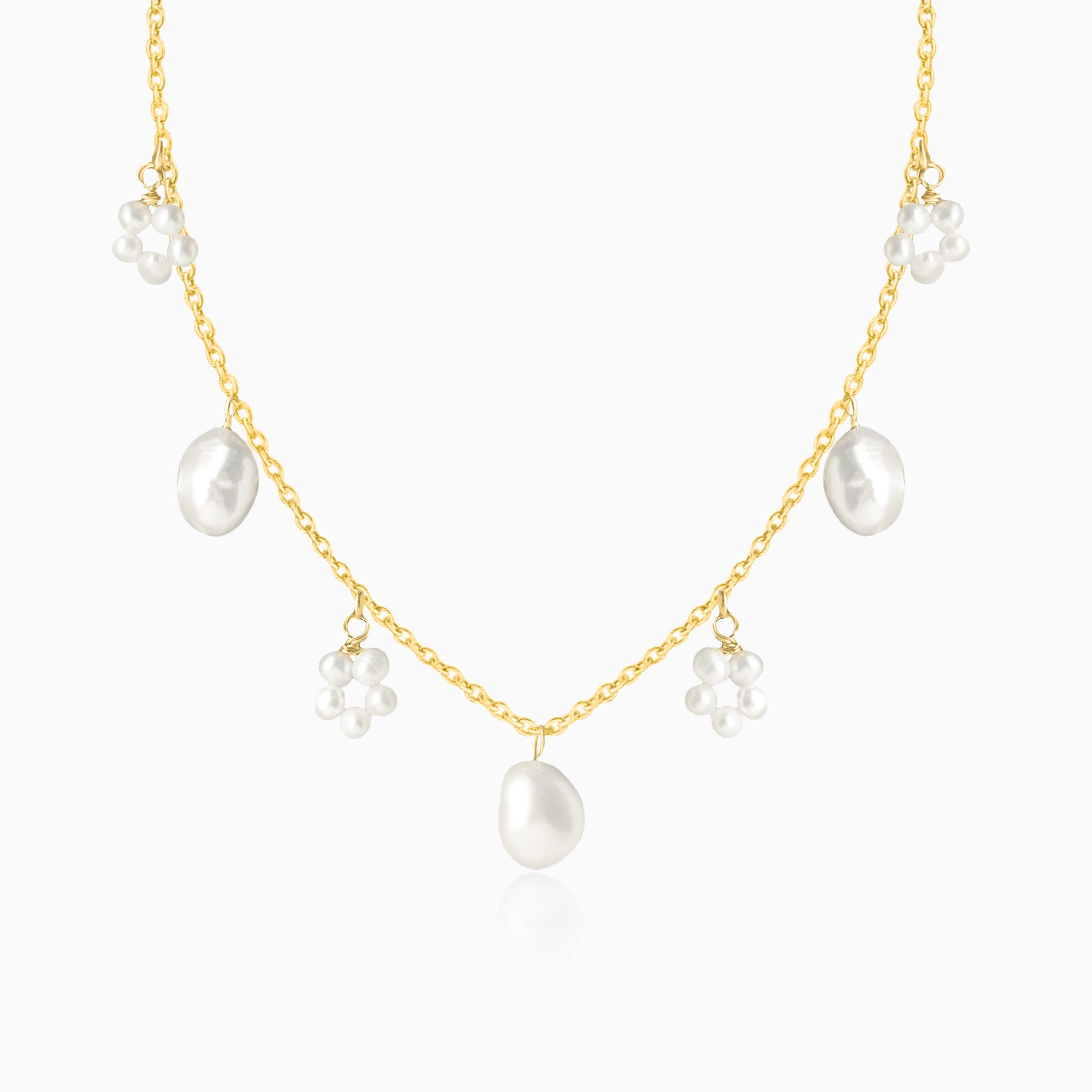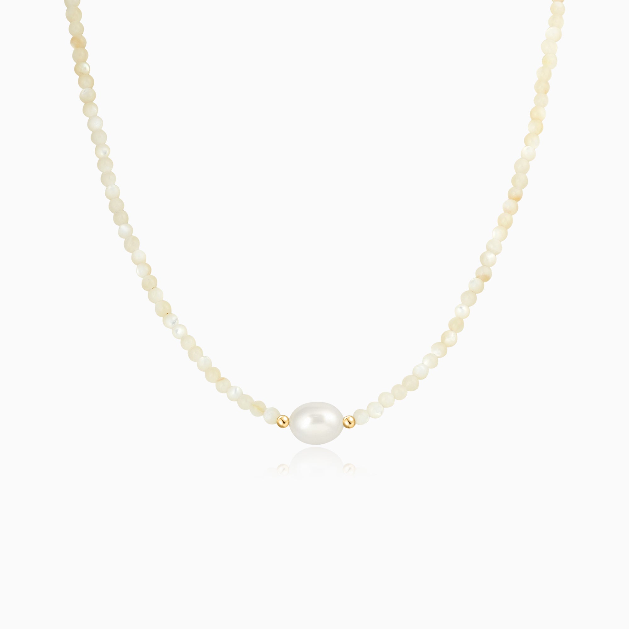 Gold Plated S925 Beads Necklace With Pearl Pendant