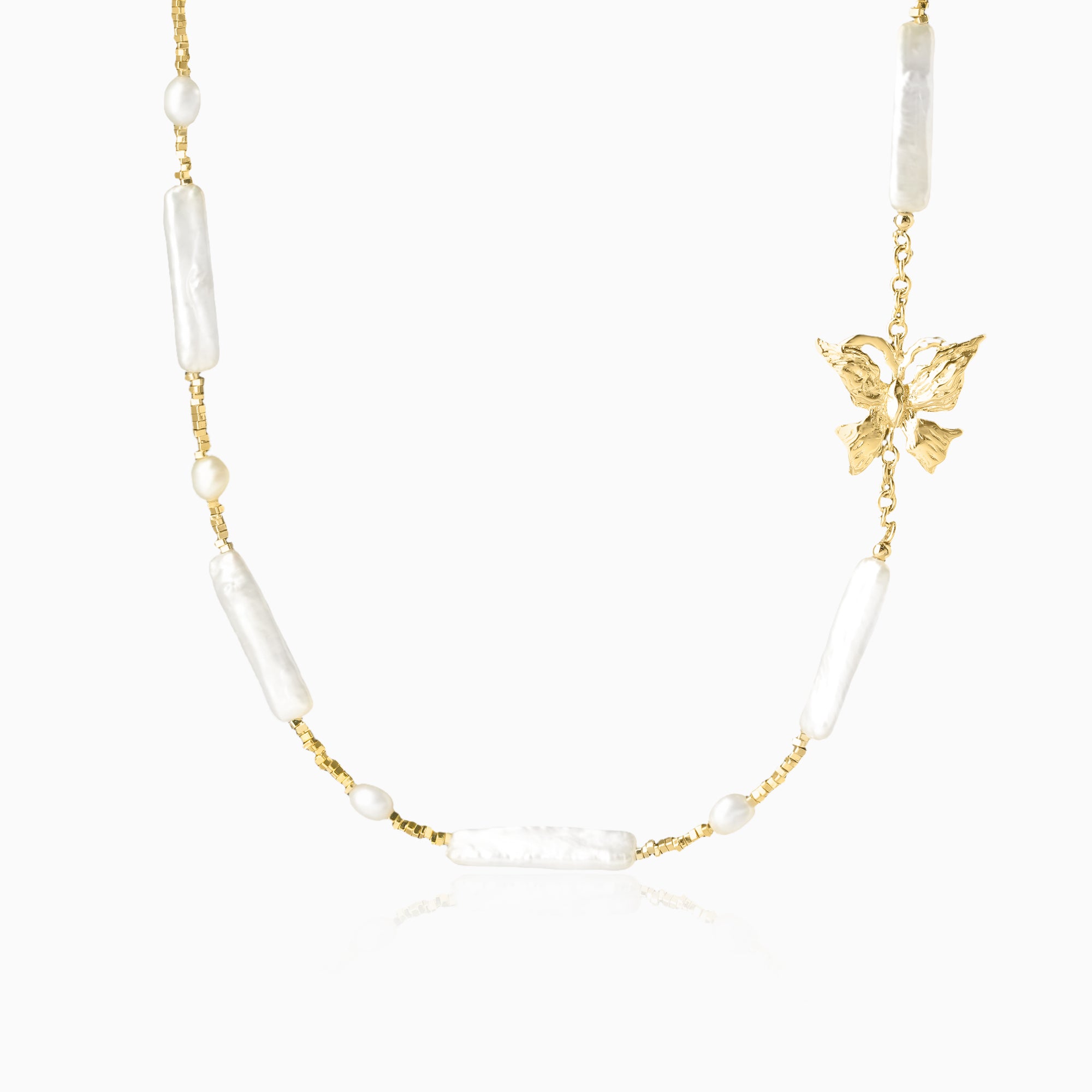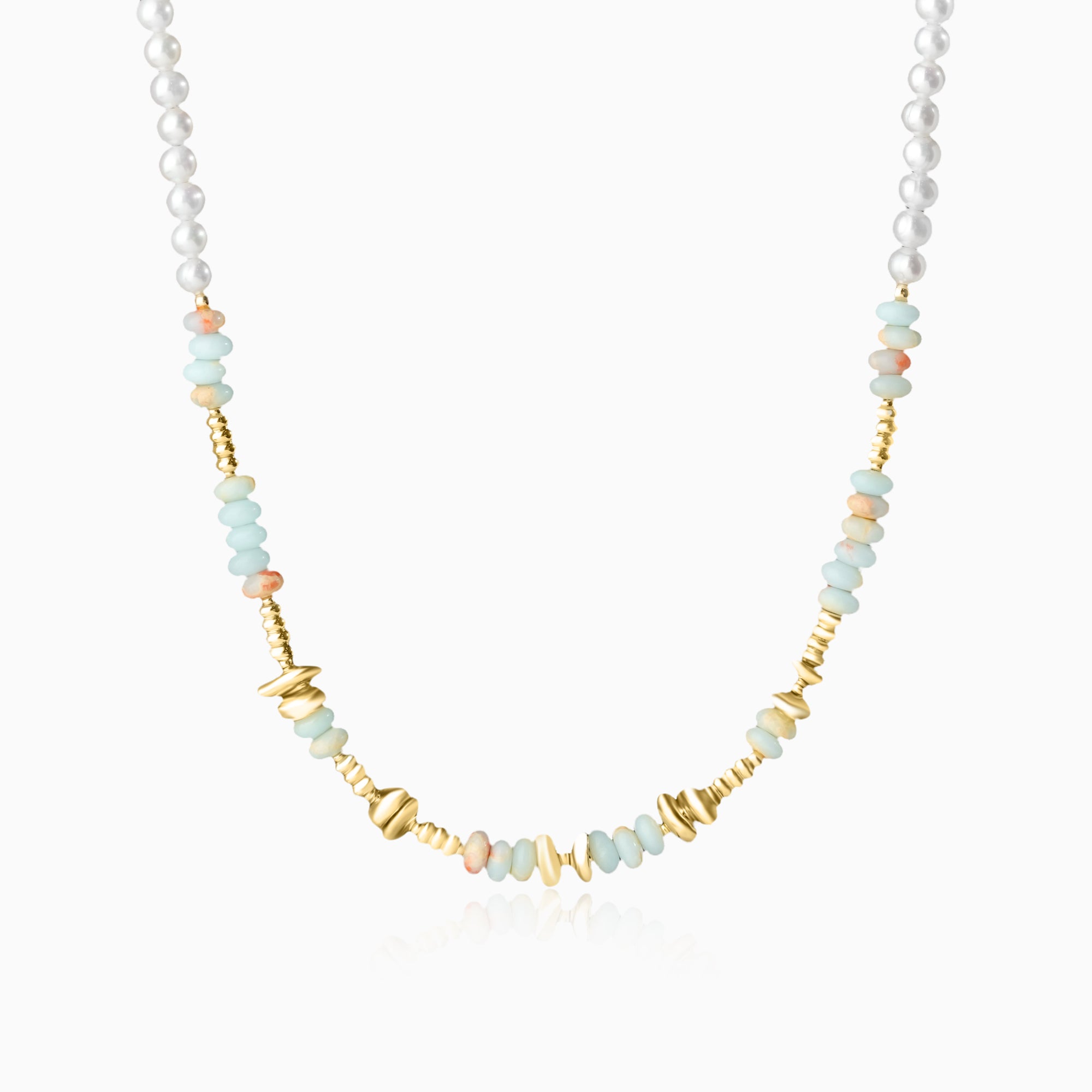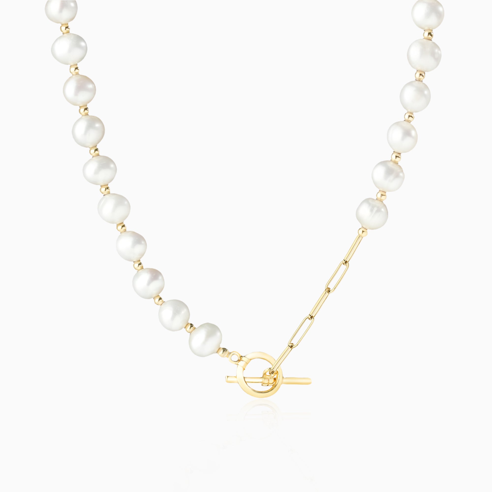 Gold Plated S925 Beads Necklace With Pearl Pendant