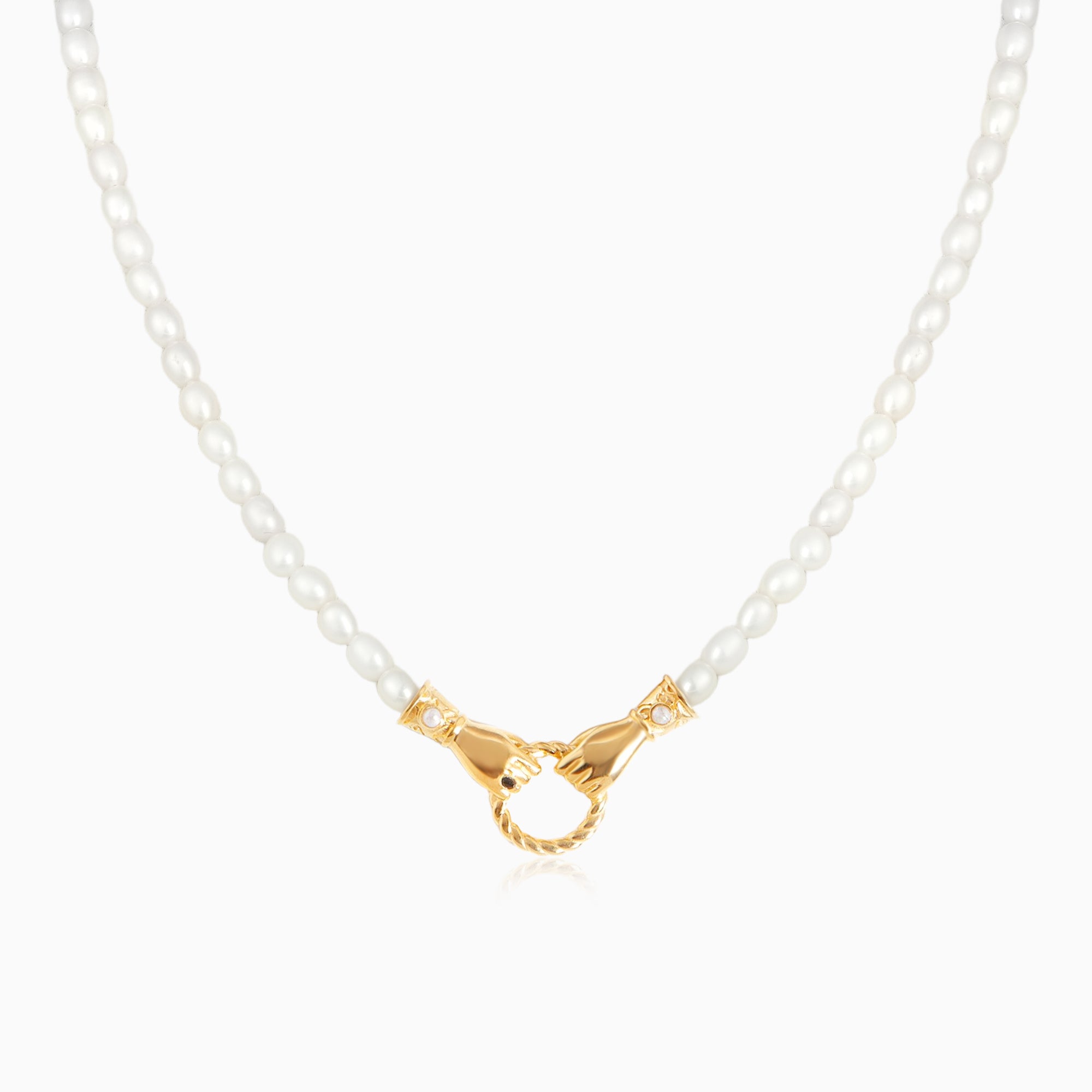 Elegant Gold Plated Hook Clasp Pearls Bracelet