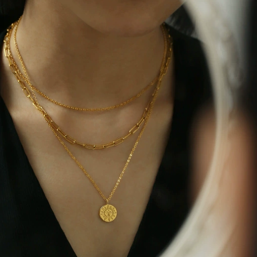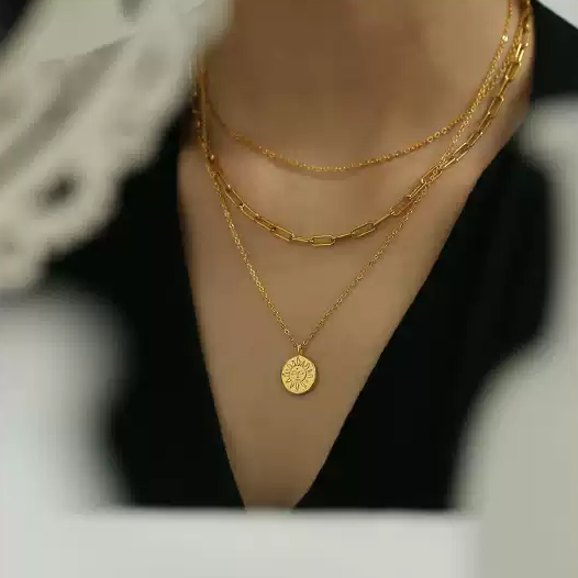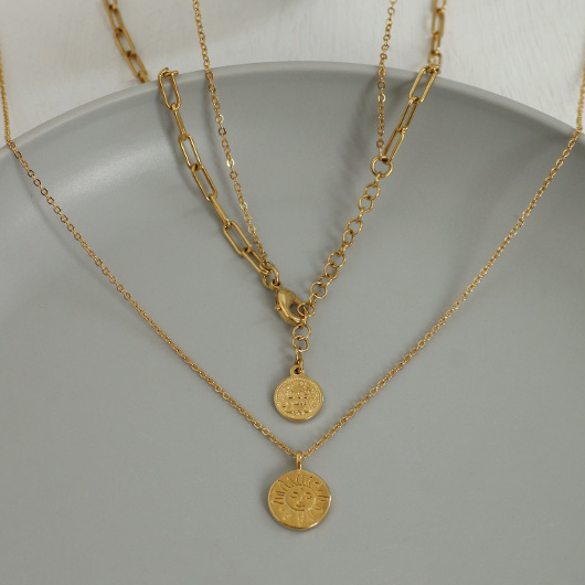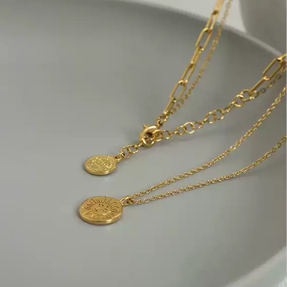 Weight: Double-Layer Necklace: 9.2g, Sun Pendant Necklace: 3.5g