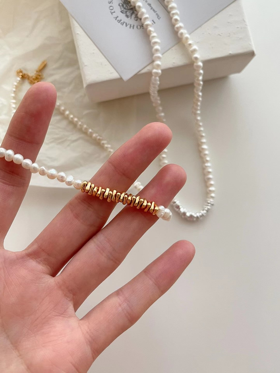 Material: S925 silver plated with vintage gold and natural freshwater pearls.