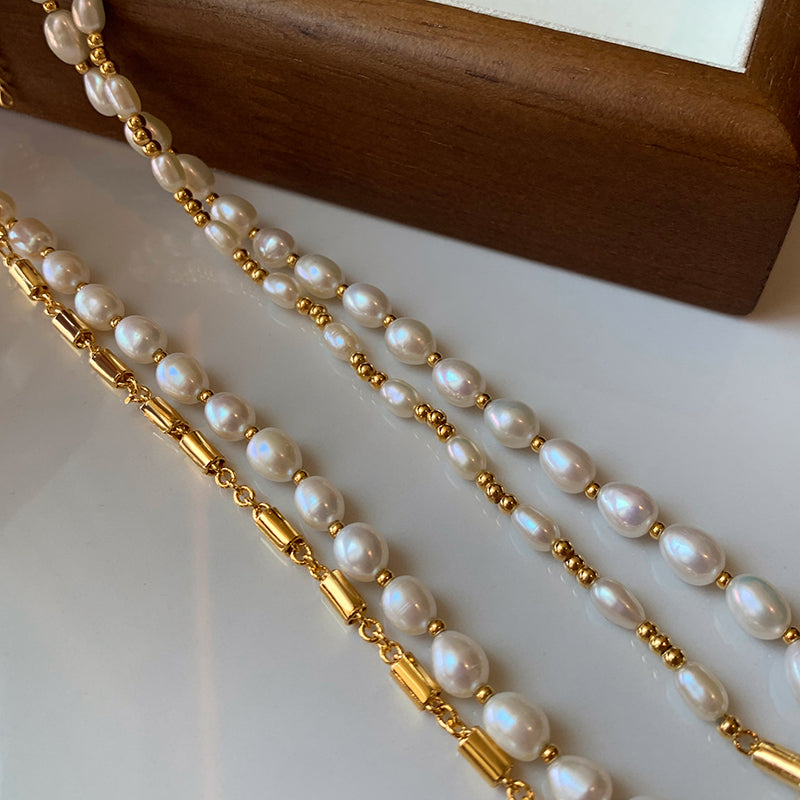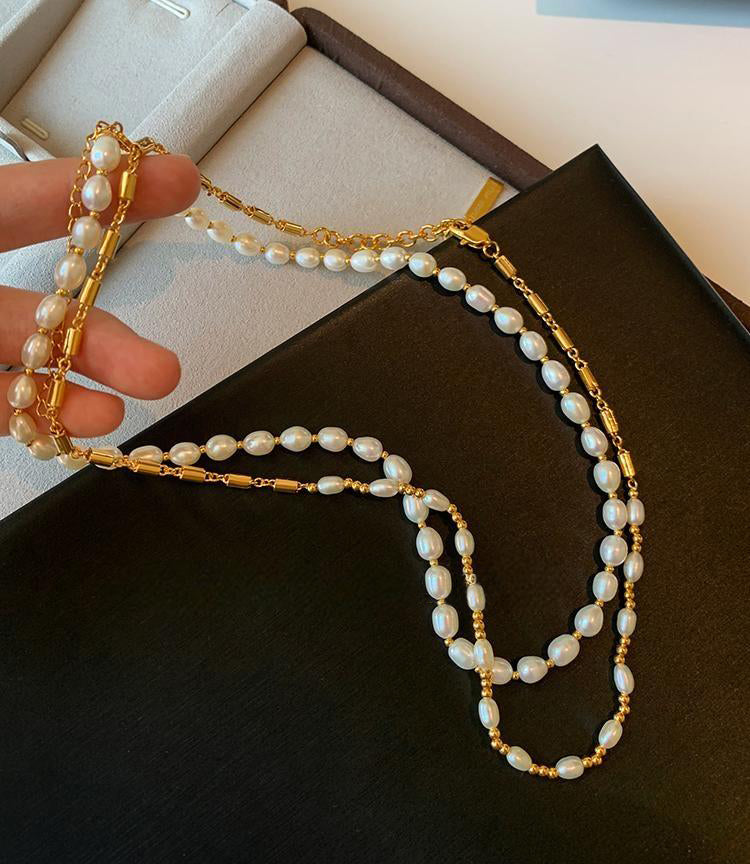 Size: Pearl Necklace 42cm+7cm, Patchwork Necklace 41cm+5.5cm
