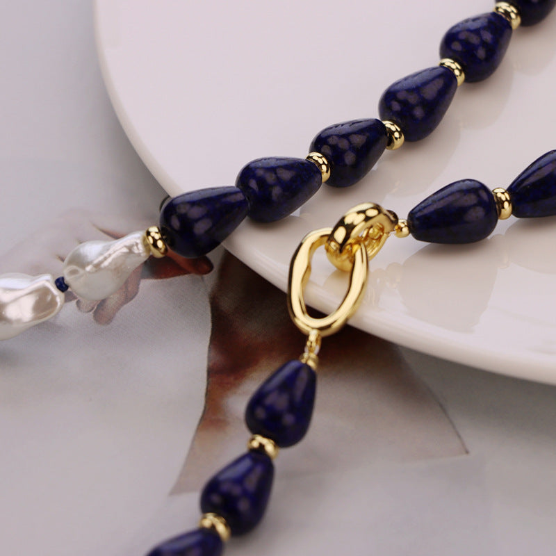 Imitation Baroque Pearl Lapis Lazuli Necklace