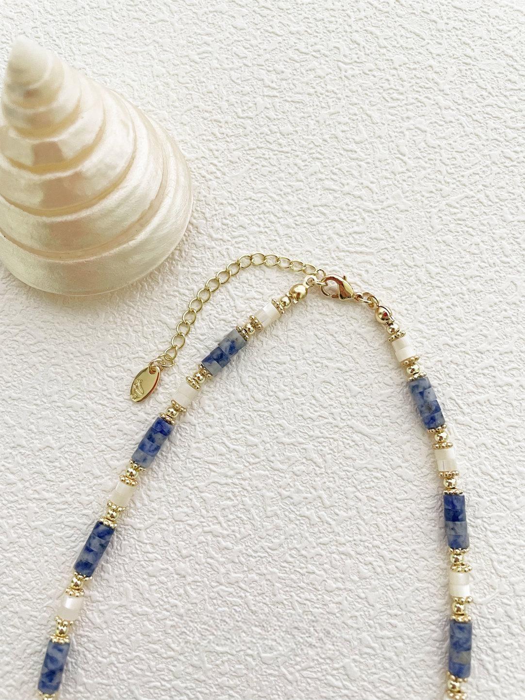 Size: 40+5 cm. This necklace exudes a royal vintage aura and can be worn alone or layered. Due to the use of natural stones, slight imperfections such as inclusions or uneven colors are normal and not noticeable at a social distance. Please consider carefully before purchasing.