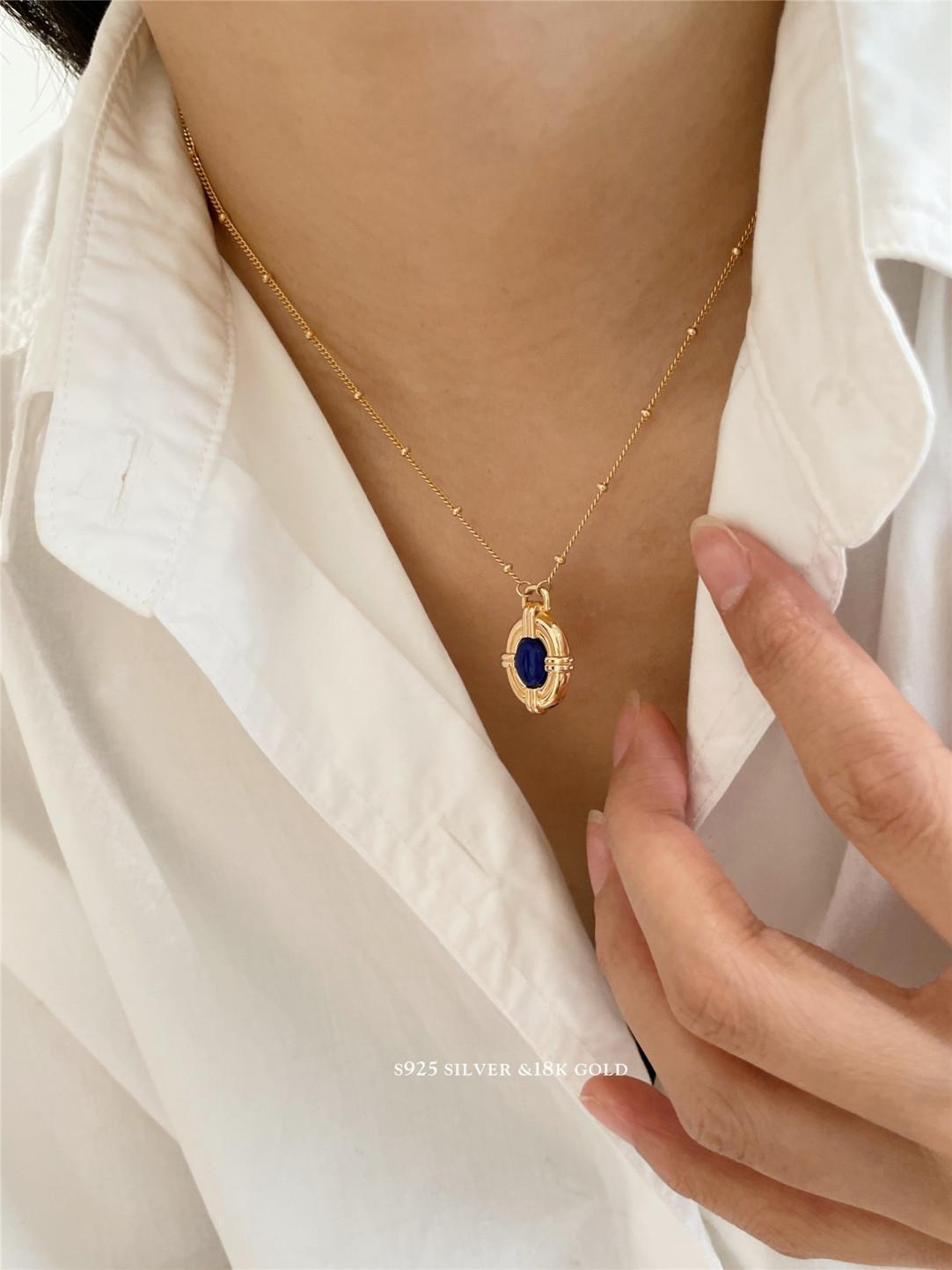 Materials: S925 silver plated with 18k gold and lapis lazuli.