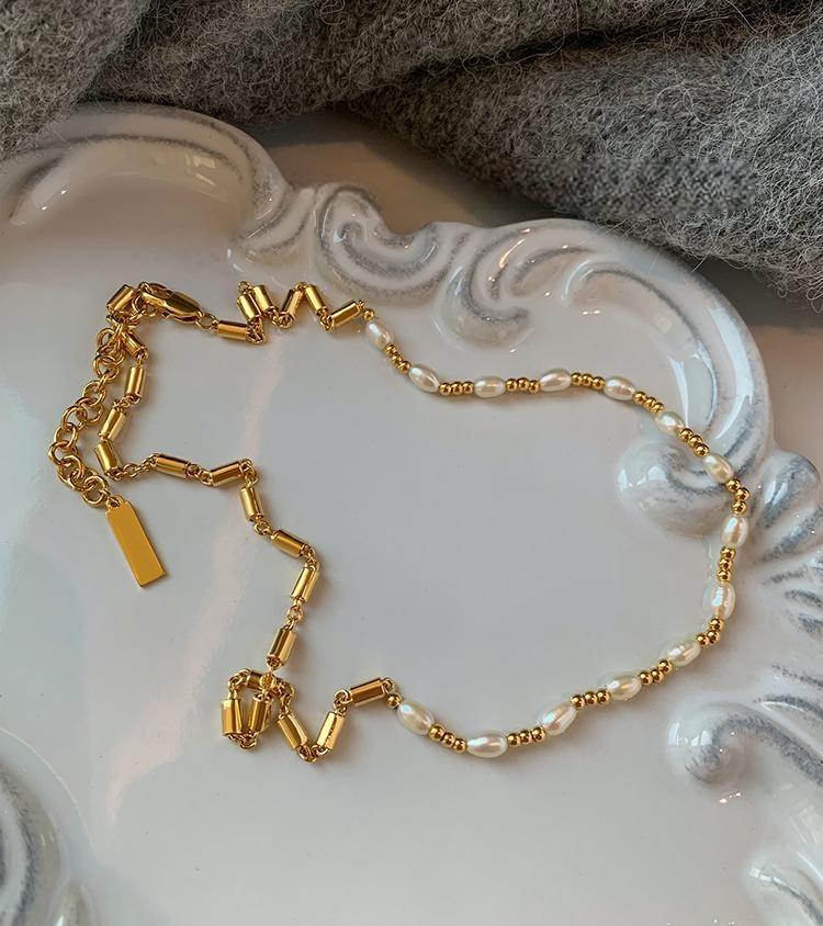 Snake-Chain Double Layer Beads Baroque Pearl Necklace