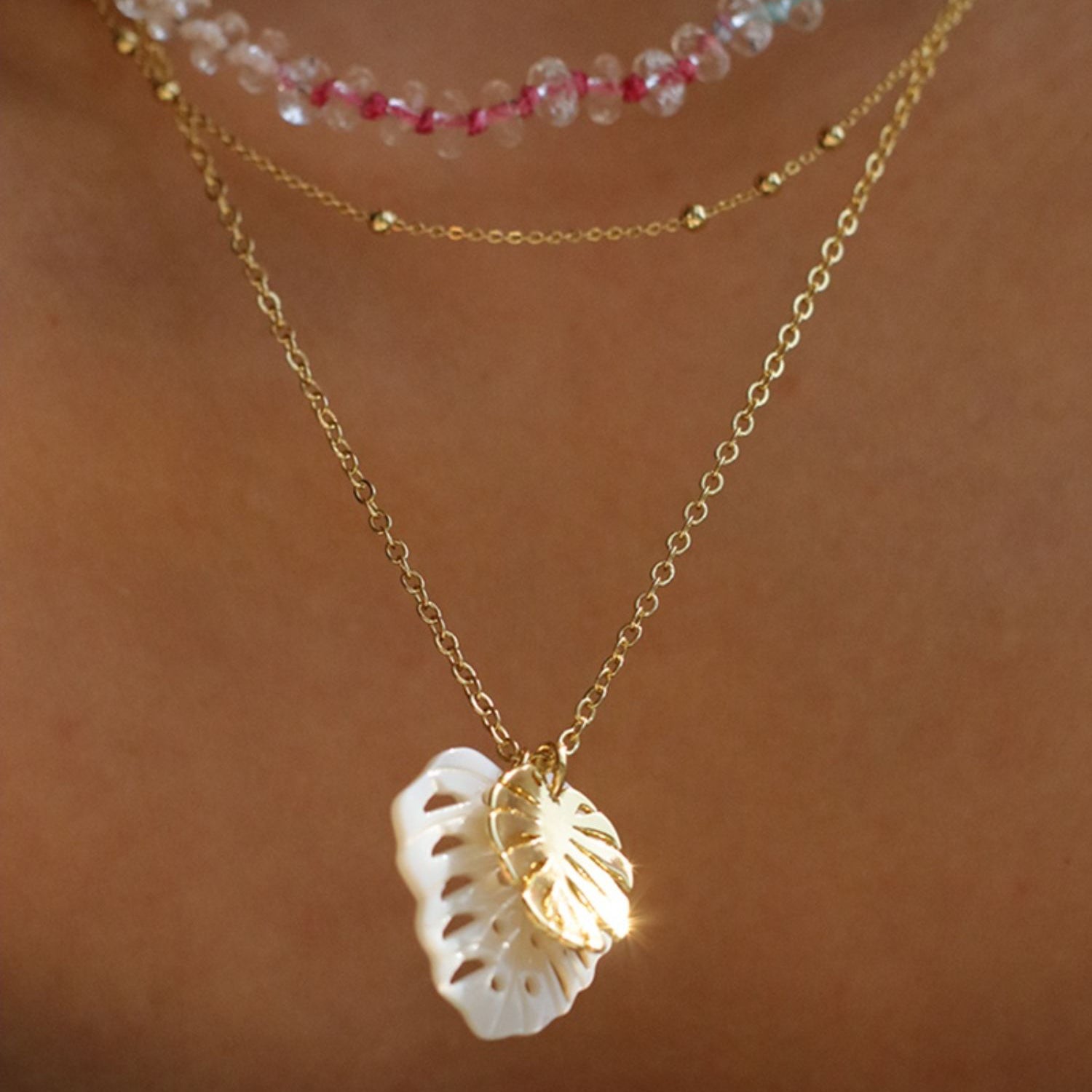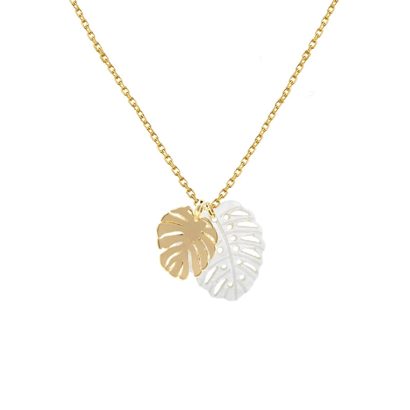 White Nacre Monstera Leaf Gold Plated Neckalce