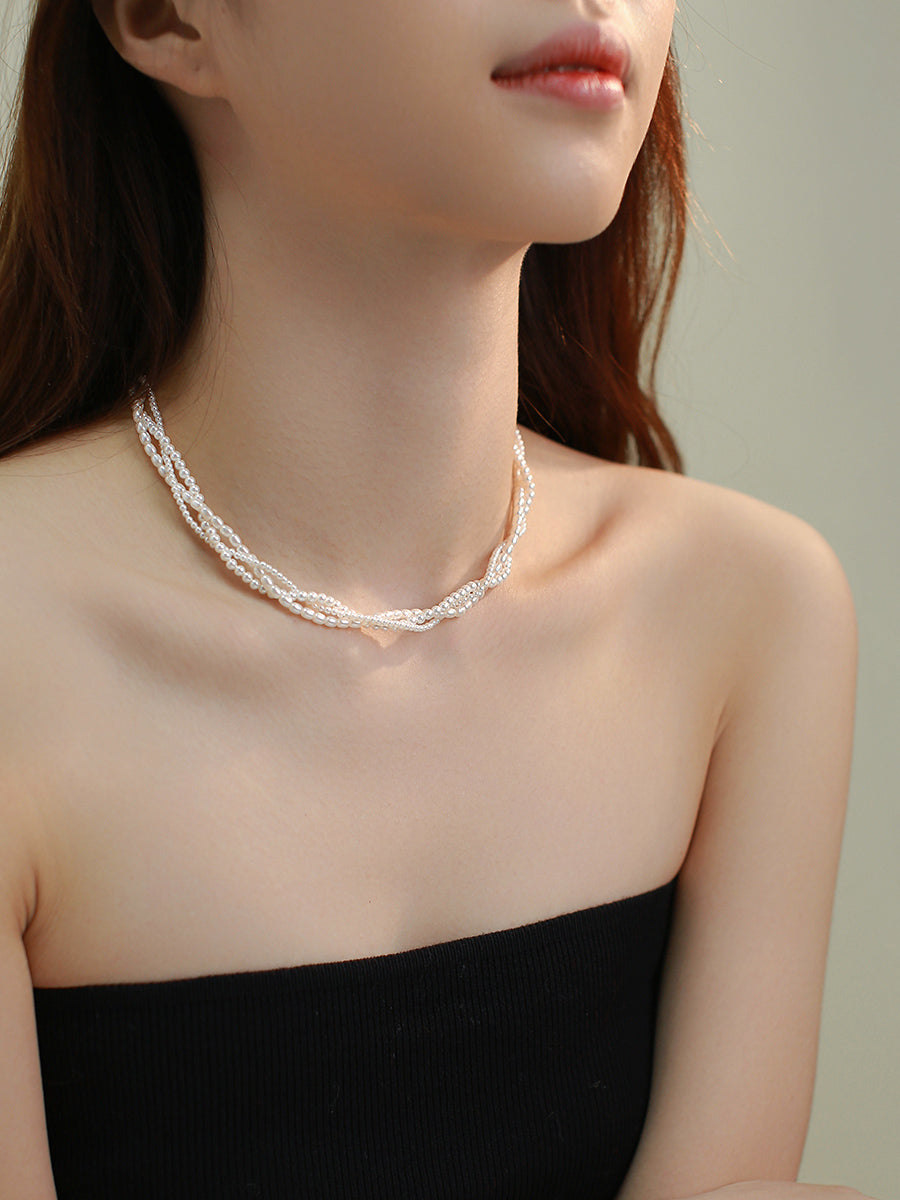 14K Rolled Gold Triple - Layer Pearl Necklace